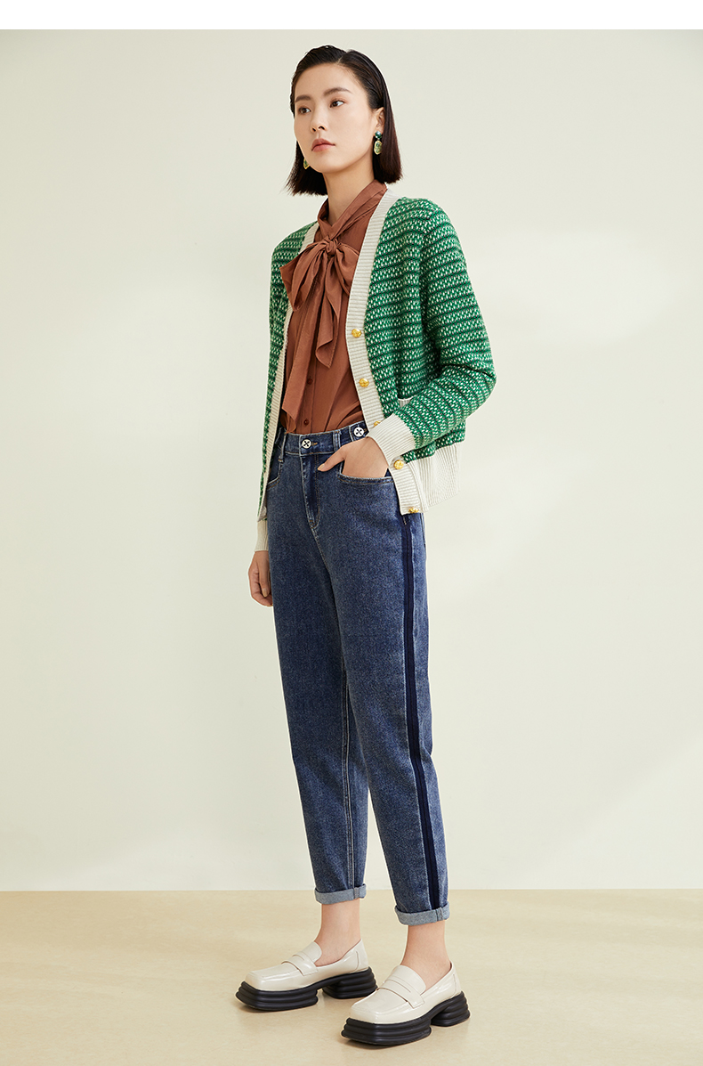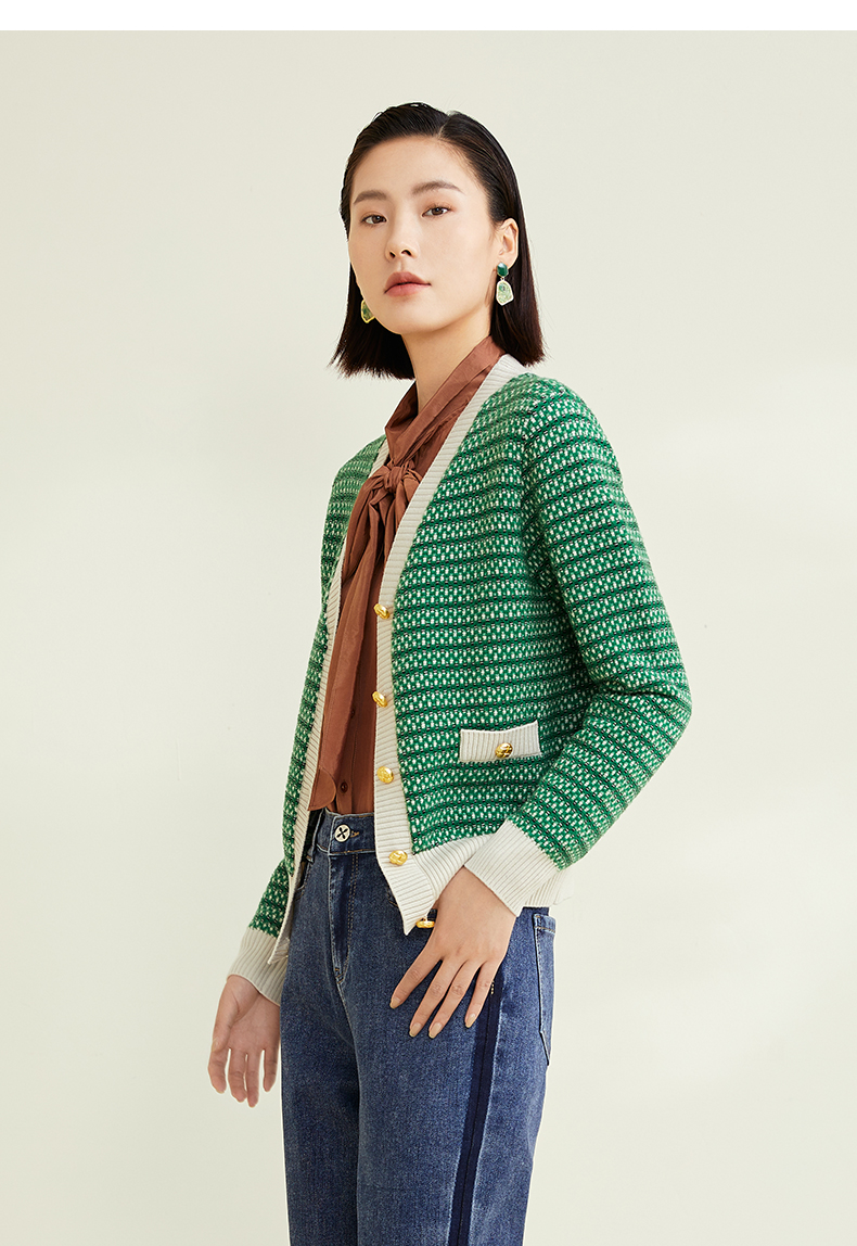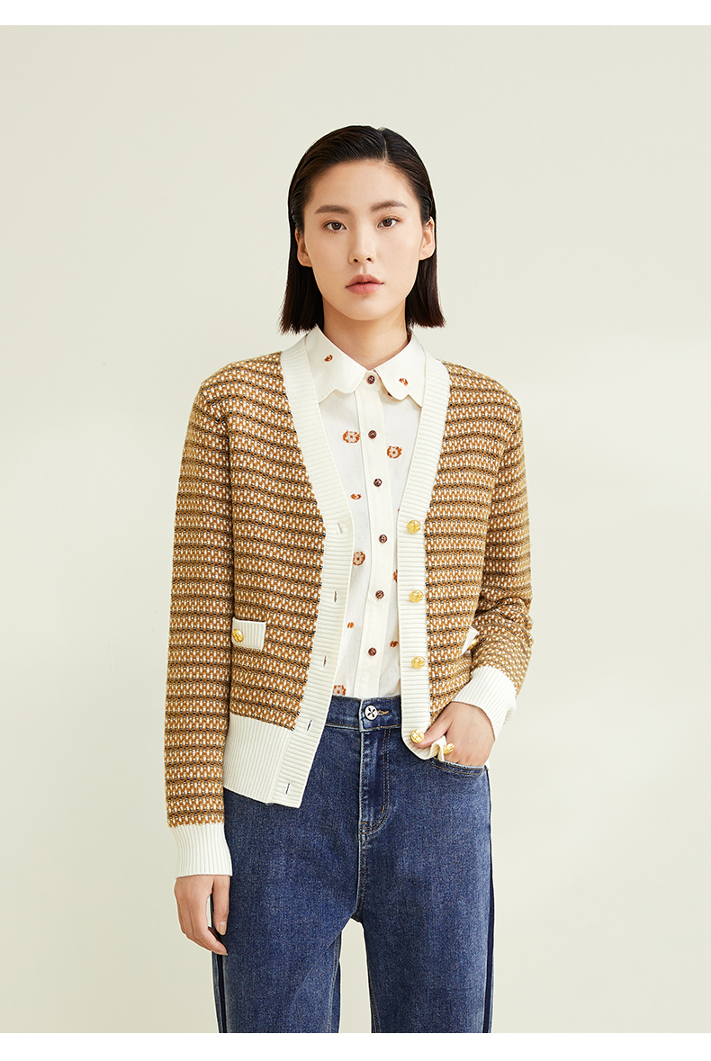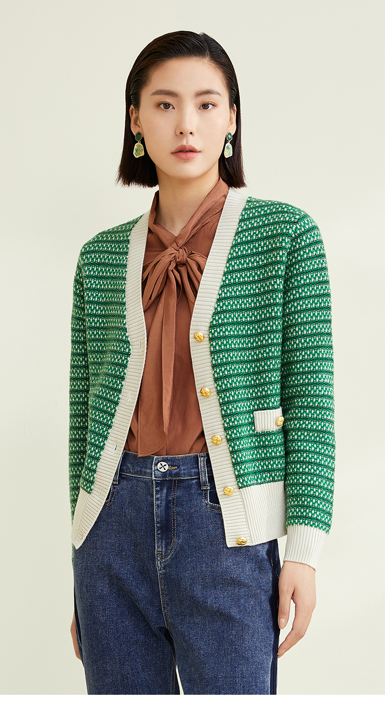 玳莎小香风针织开衫女优雅设计感V领上衣羊毛针织衫 CD33303