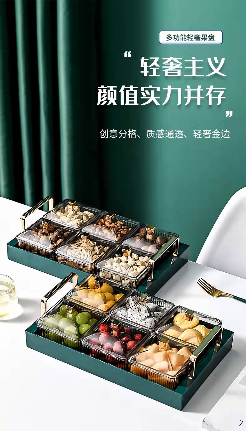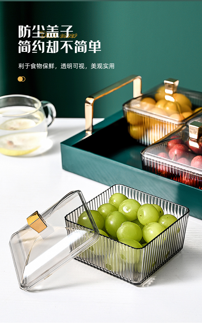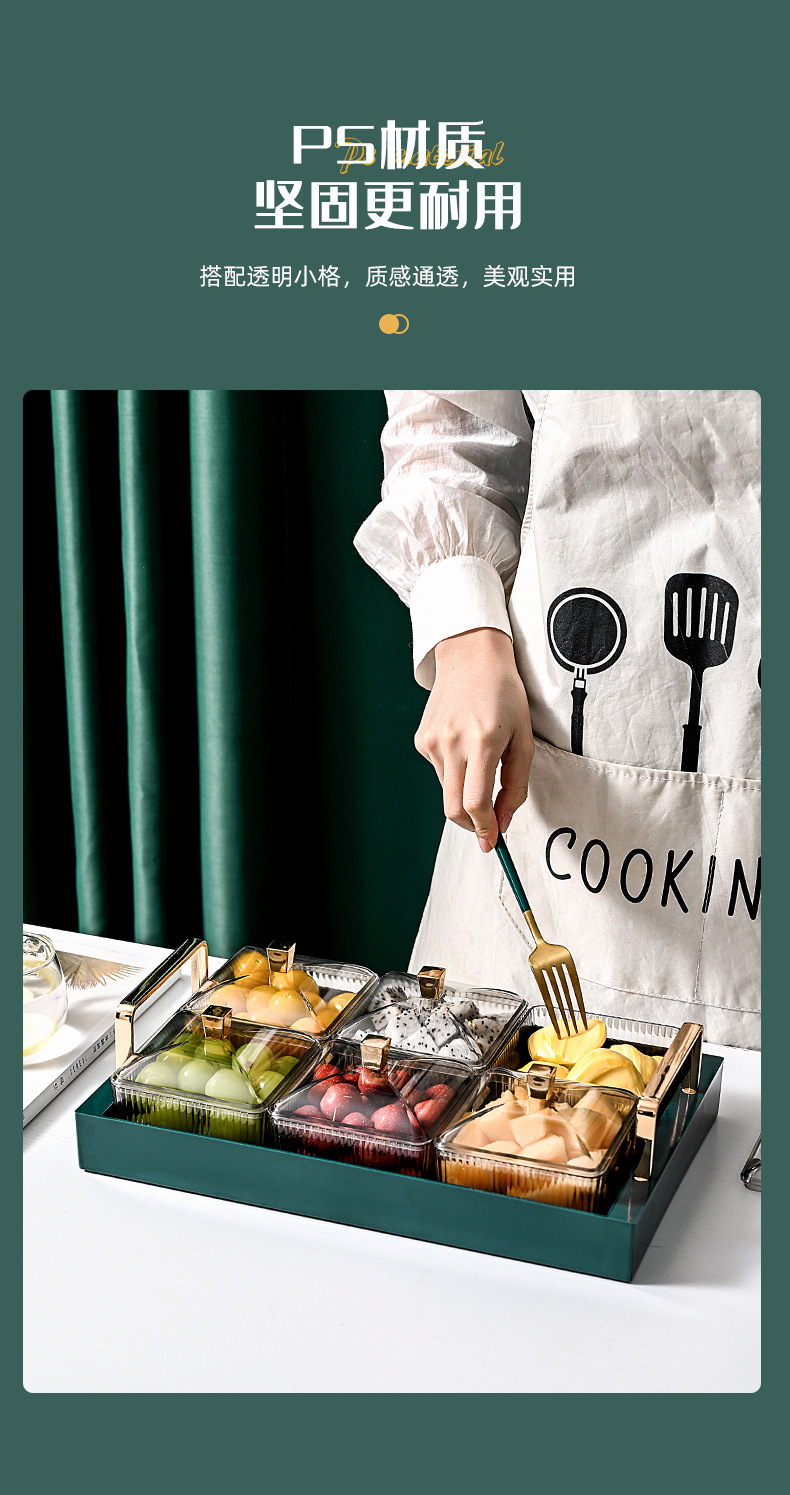 【多功能轻奢果盘 整齐有序不串味】新款北欧分格果盘点心分格拼盘客厅透明水果盘家用零食干果盘