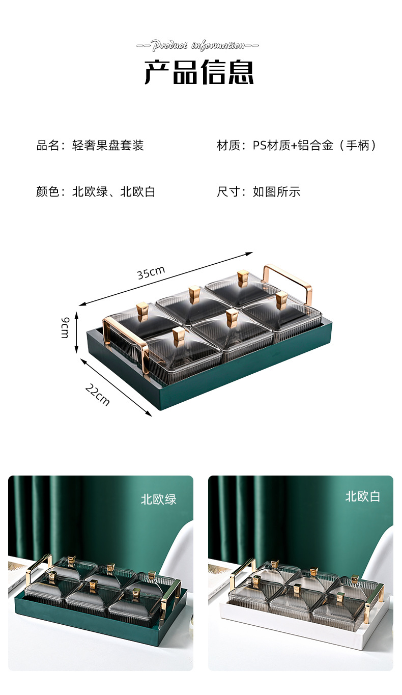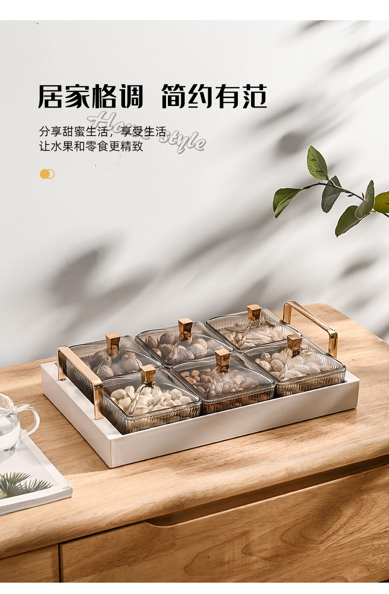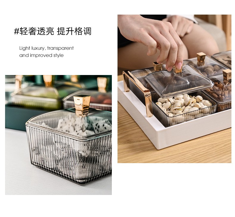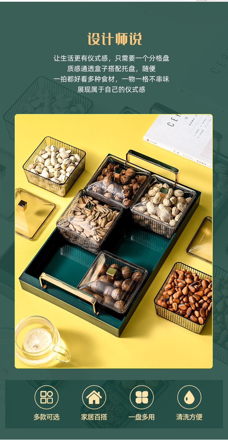 【多功能轻奢果盘 整齐有序不串味】新款北欧分格果盘点心分格拼盘客厅透明水果盘家用零食干果盘