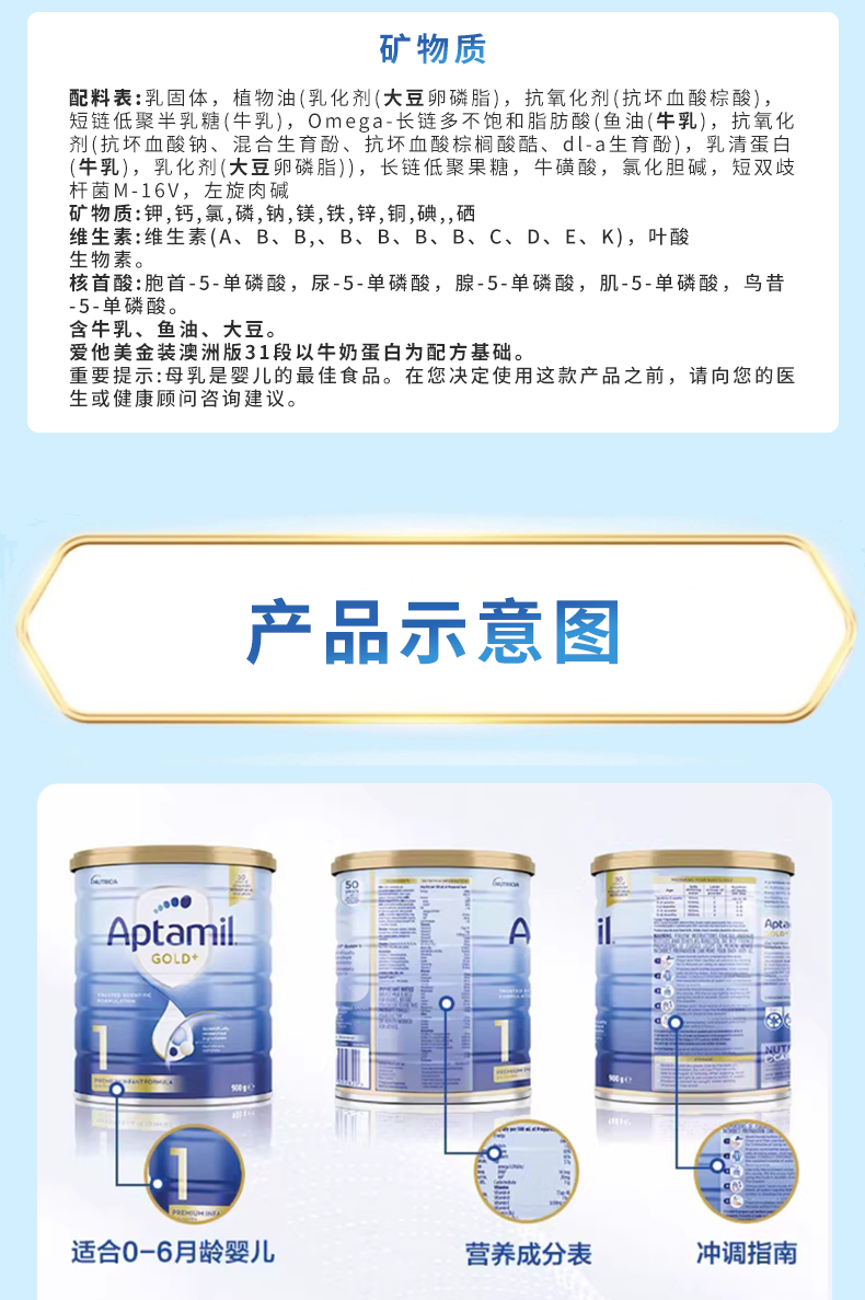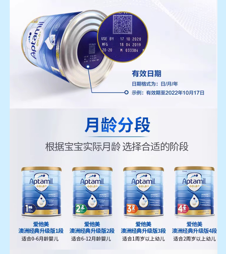 【保税仓】澳洲爱他美Aptamil金装 1段 900g 新包装