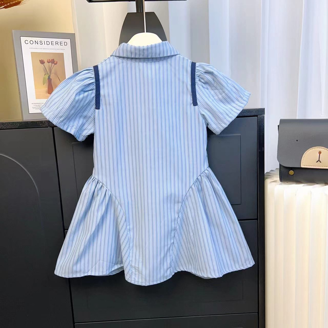 【女童夏季学院风连衣裙】2024新款儿童Polo领短袖衬衫裙宝宝夏装裙子