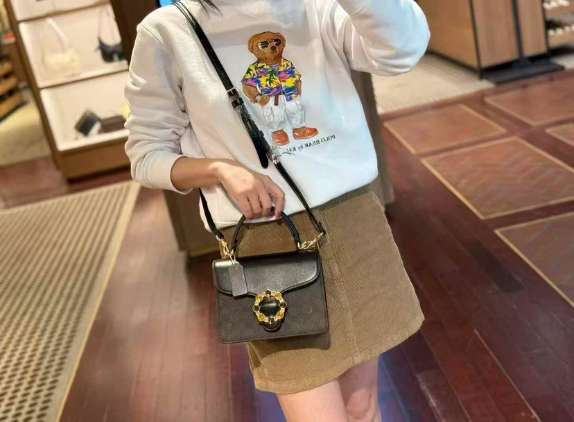 上新折扣1599¥🇺🇸直邮✈️黑棕色老花Coach新款Courtney 水晶扣方盒子包,🉑手提斜挎