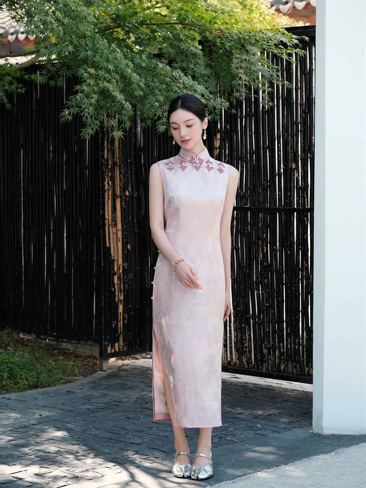 盛唐牡丹| 珍珠白真丝竹子纹偏襟上衣