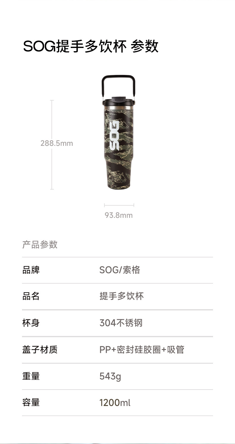 SOG索格 便携车载杯 保温随行杯 1.2L军迷水壶304不锈钢-分销