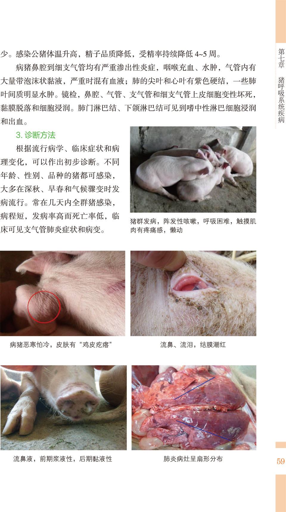近年来生猪疫病多发(如非洲猪瘟),这就要求能根据猪病临床症状和剖检变化进行正确判断,做到早发现、早诊断、早治疗。本书介绍了猪病防控中的关键问题与对策,猪场的免疫技术,猪传染病发生时的及时处理和规范用药原则,猪重大疫病、呼吸系统疾病、消化系统疾病等典型防治方案,同时还收纳了猪病原图,真实还原了发病场景和临床症状,能够快速抓住猪病的诊断要点,从而达到“看图识病、看图诊病、看图治病、看图防病”的目的,具有很强的实际