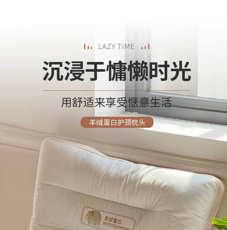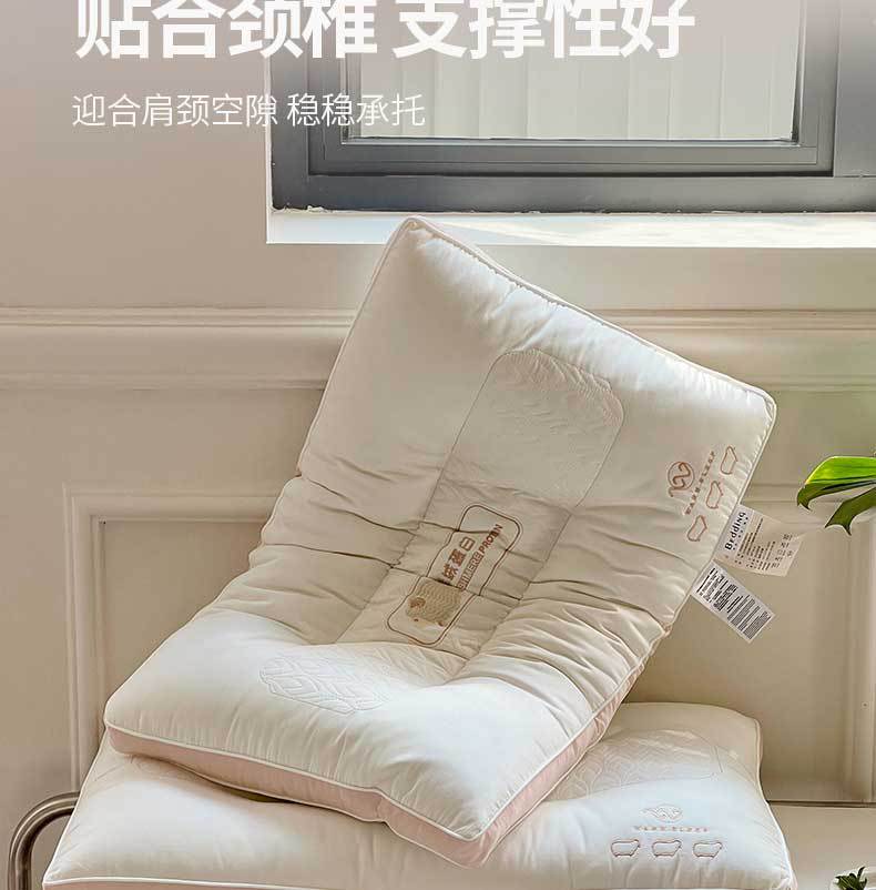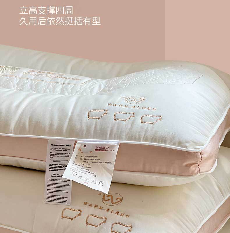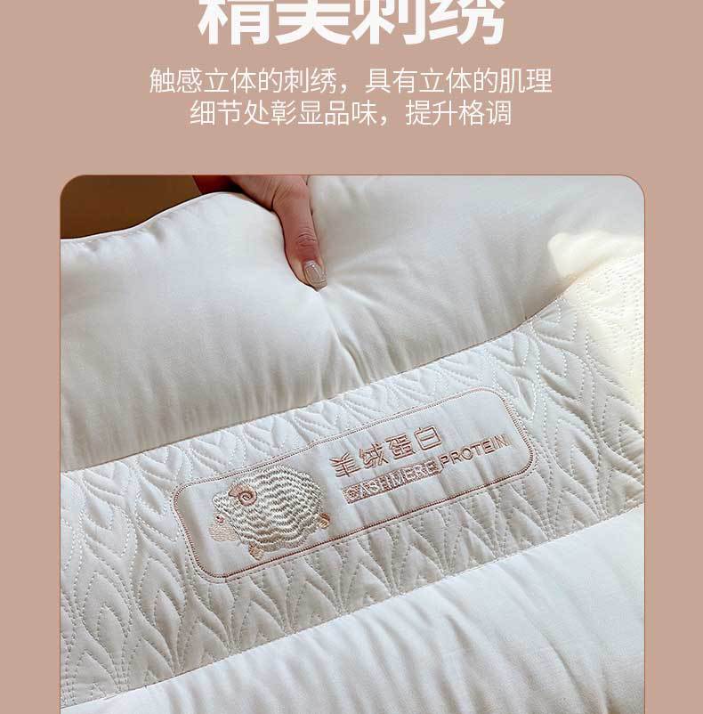 【呵护颈椎❗️羊绒蛋白护颈枕头】蓬松舒适不易板结持久回弹,受力均匀,迎合肩颈空隙稳稳承托,单人高弹不塌陷人体工程学分区护颈枕精美刺绣QQ