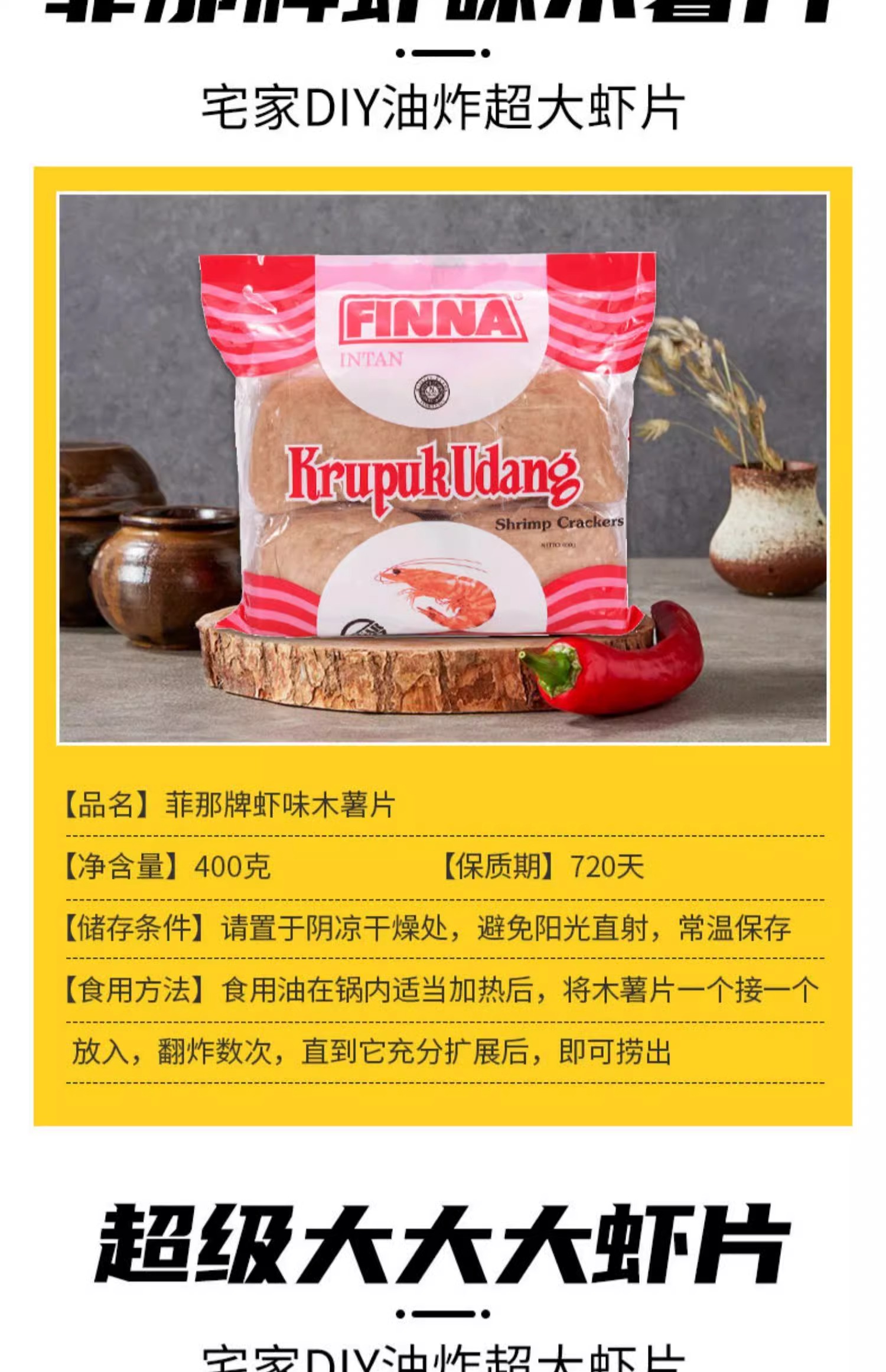 印尼进口 菲娜牌虾味木薯片400g 需自己炸薯片