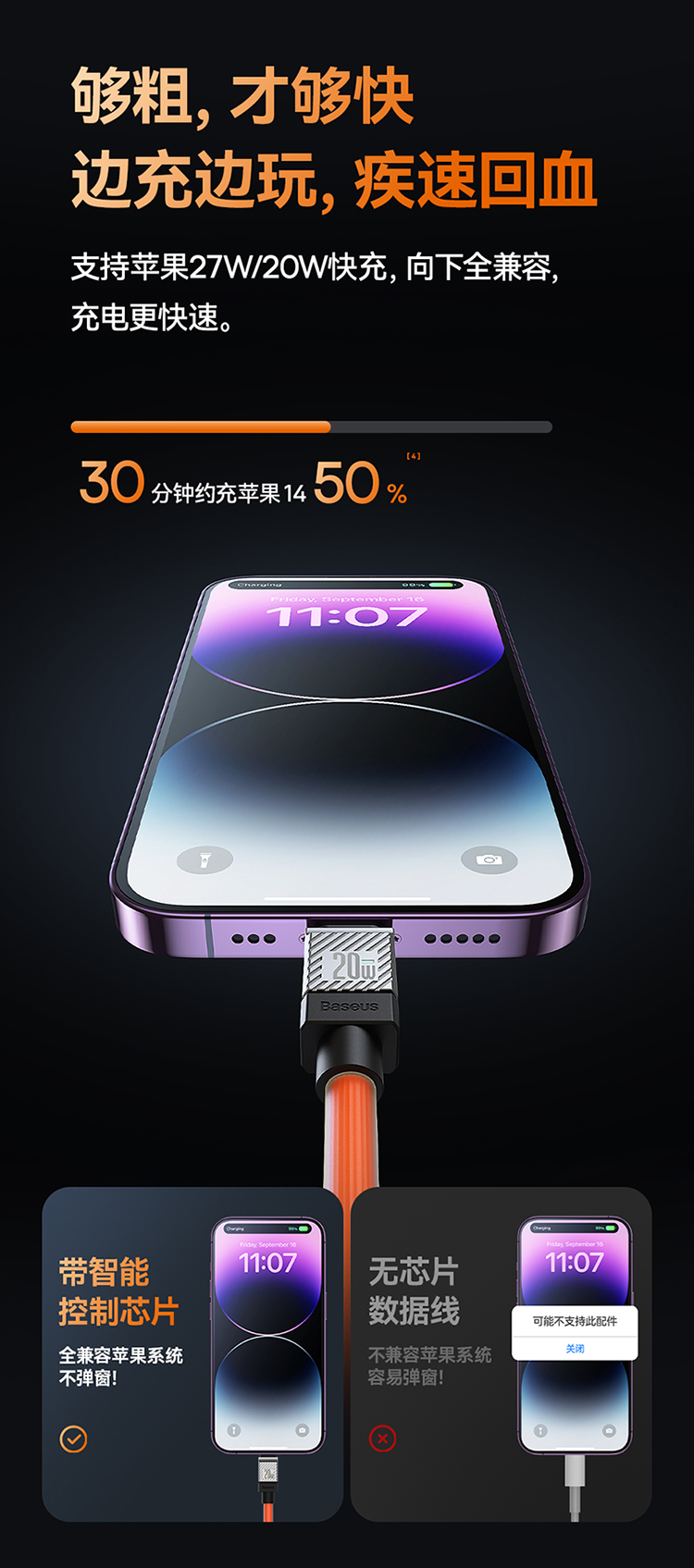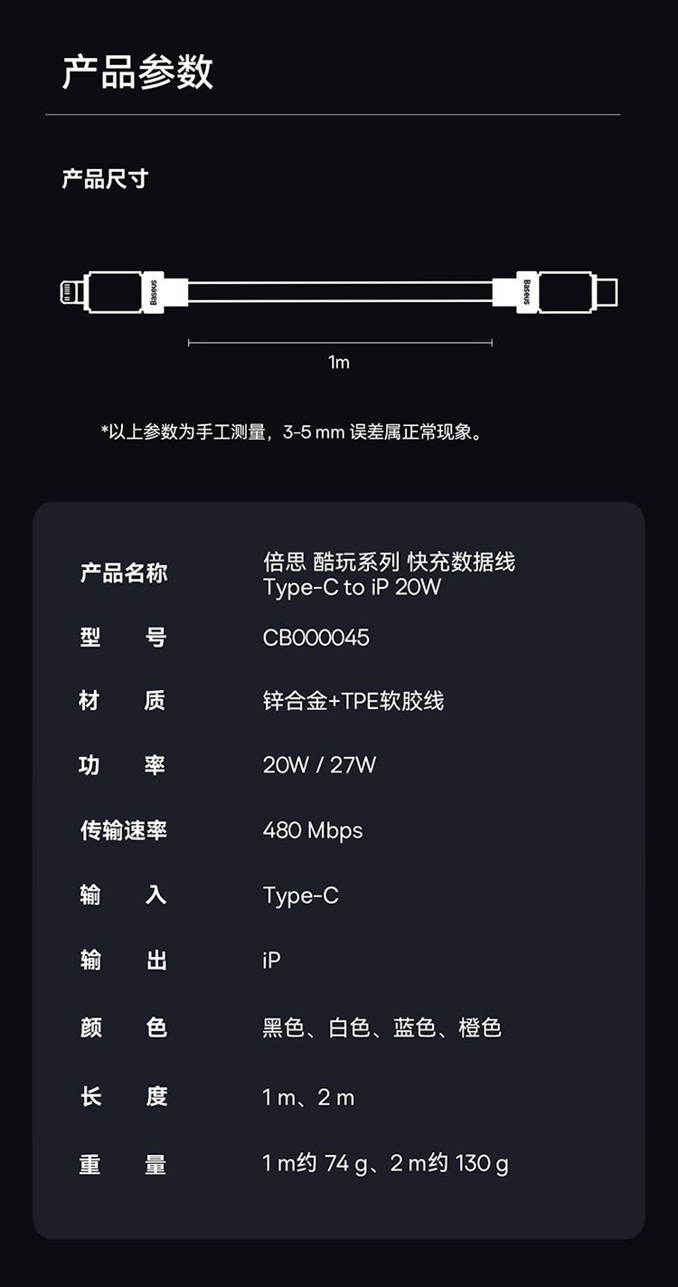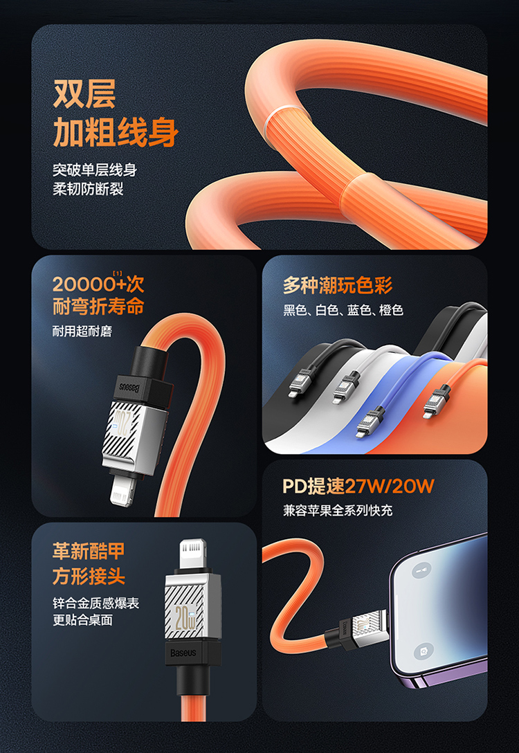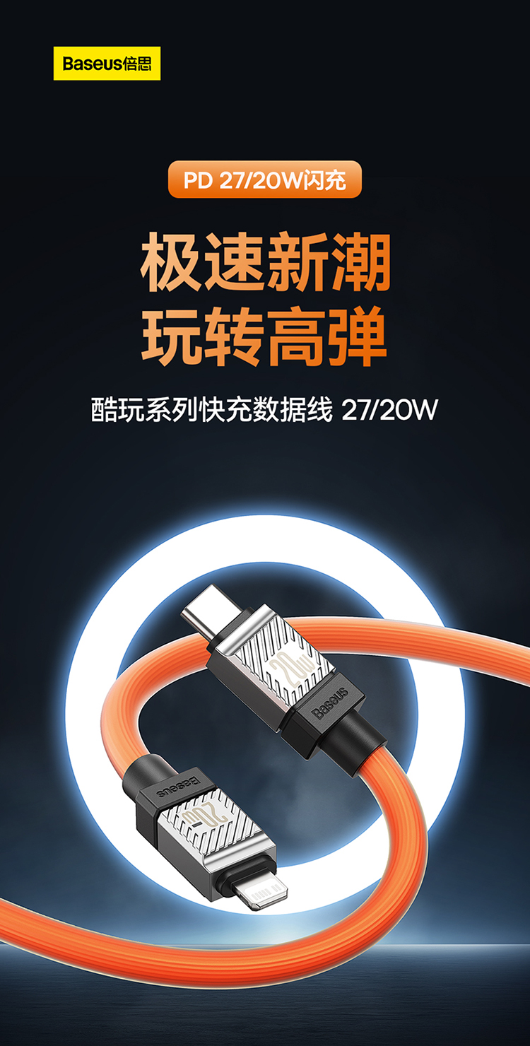 倍思 酷玩系列 快充数据线Type-C to iPhone 20W 适用苹果手机14/13/12 iPad平板 PD充电线