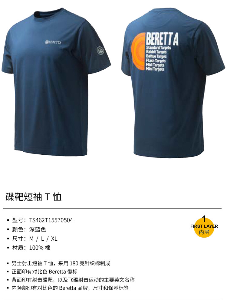 意大利BERETTA时尚个性 运动户外 碟靶短袖T恤
