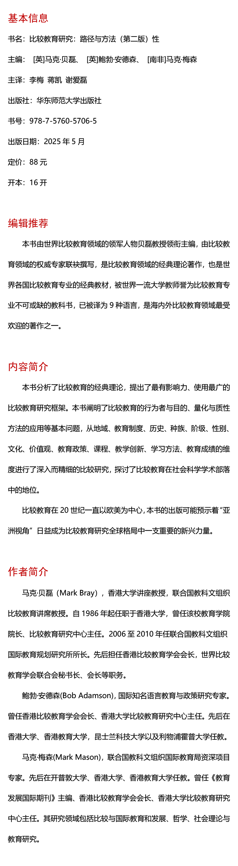 比较教育研究 路径与方法 第二版 比较教育研究的经典之作