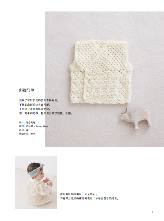 本书是宝库社精心打造的一本儿童服饰编织书,由编织名师菅野直美、河合真弓、川路由美子、岸睦子等设计制作,款式可爱,配色鲜艳,适合各年龄段儿童穿搭。24款作品涉及常用的背心、开衫、裙子、帽子、手套、包包等衣服和小物,适合身高65145厘米的儿童,可根据孩子体型和身材制作合身的衣物,而且可以随身形变化修改衣物。作品的材料、工具、尺寸、编织图解详细,还有线材、基础编织技法等知识,以及可以让衣物穿很久的编织秘诀,此外书中还贴心给出了实用的穿搭建议。