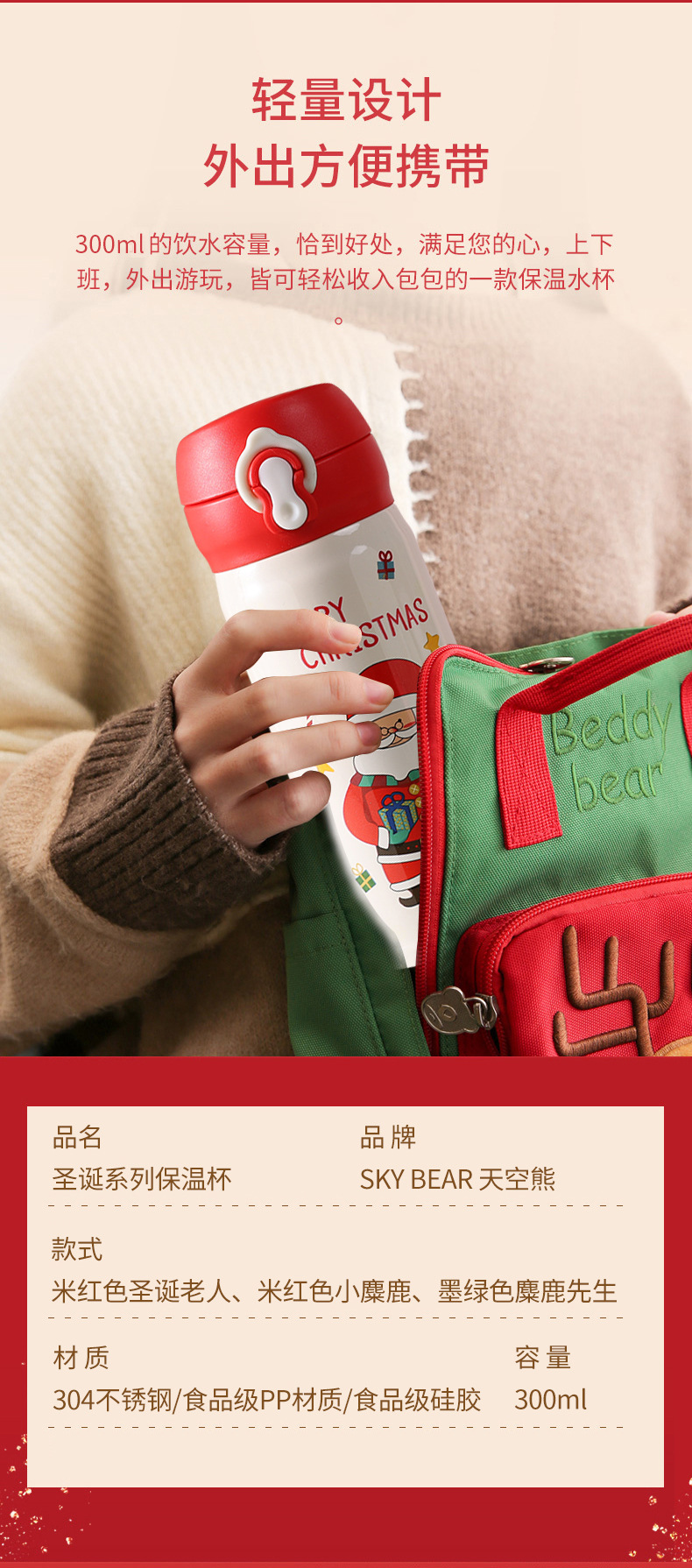 中国SKY BEAR天空熊 2022款原创圣诞老人卡通麋鹿高颜值弹跳保温杯