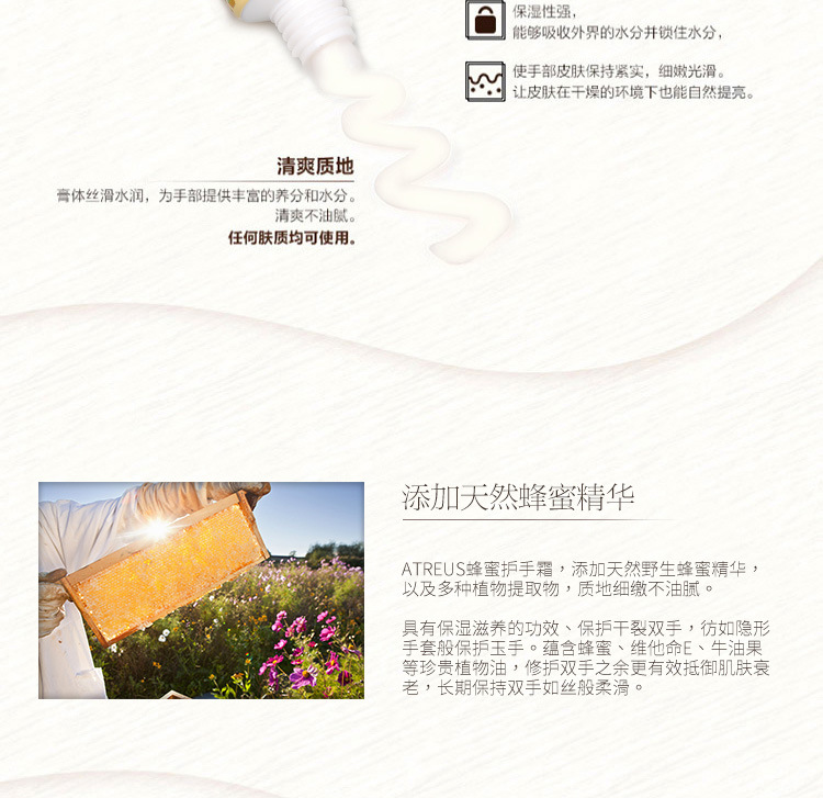 泰国ATREUS蜂蜜护手霜 滋润保湿补水嫩肤清爽不油腻