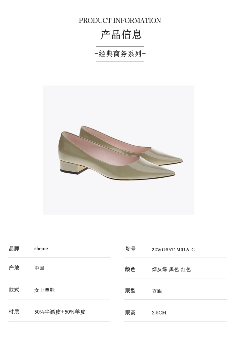 sheme真皮女鞋商务经典尖头低跟百搭时尚单鞋可定制