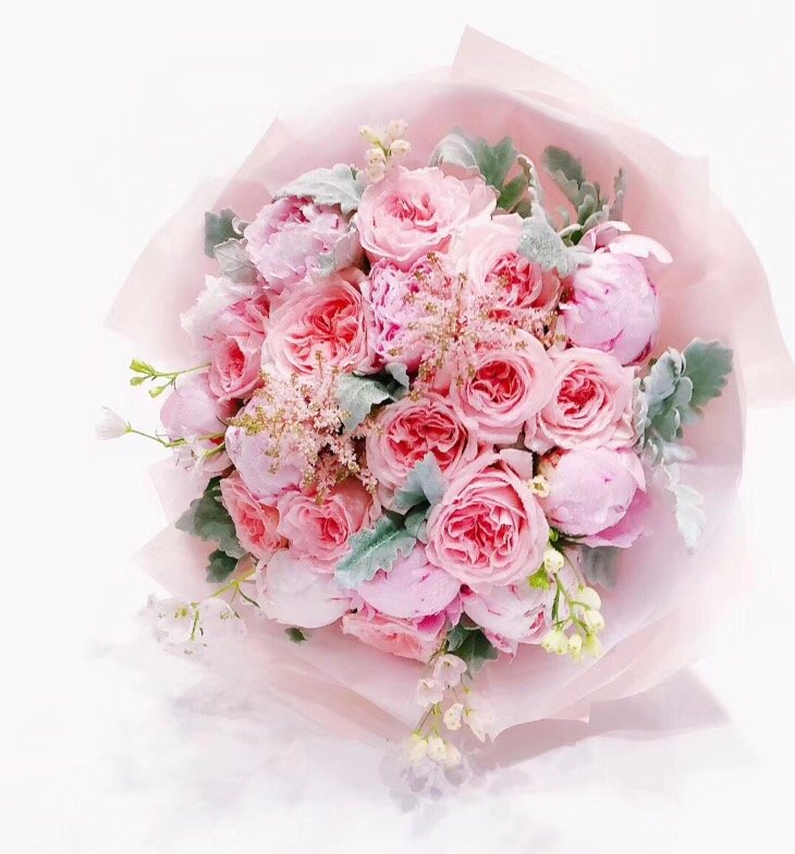 这是款以进口粉色莎拉芍药与粉色荔枝为主花材的花礼,