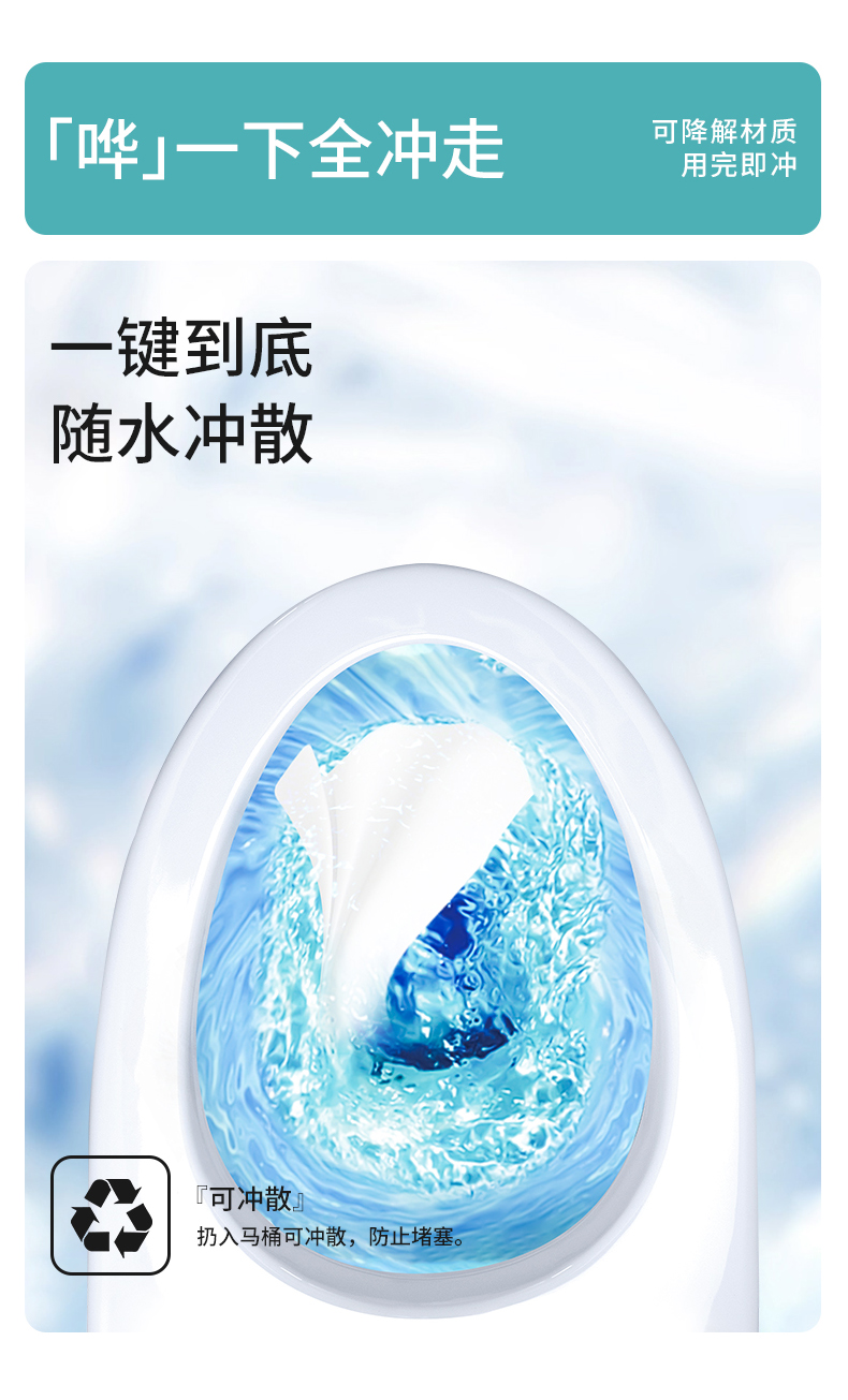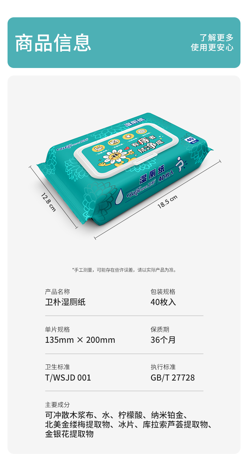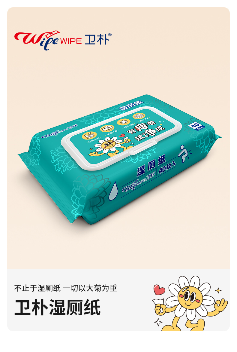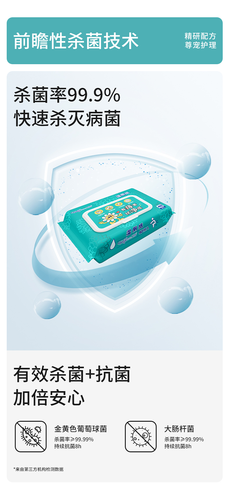 wipewipe卫朴湿厕纸 前瞻性杀菌技术 有效杀菌+抗菌 杀菌率99.9% 植物臻萃 扔入马桶可冲散 防止堵塞