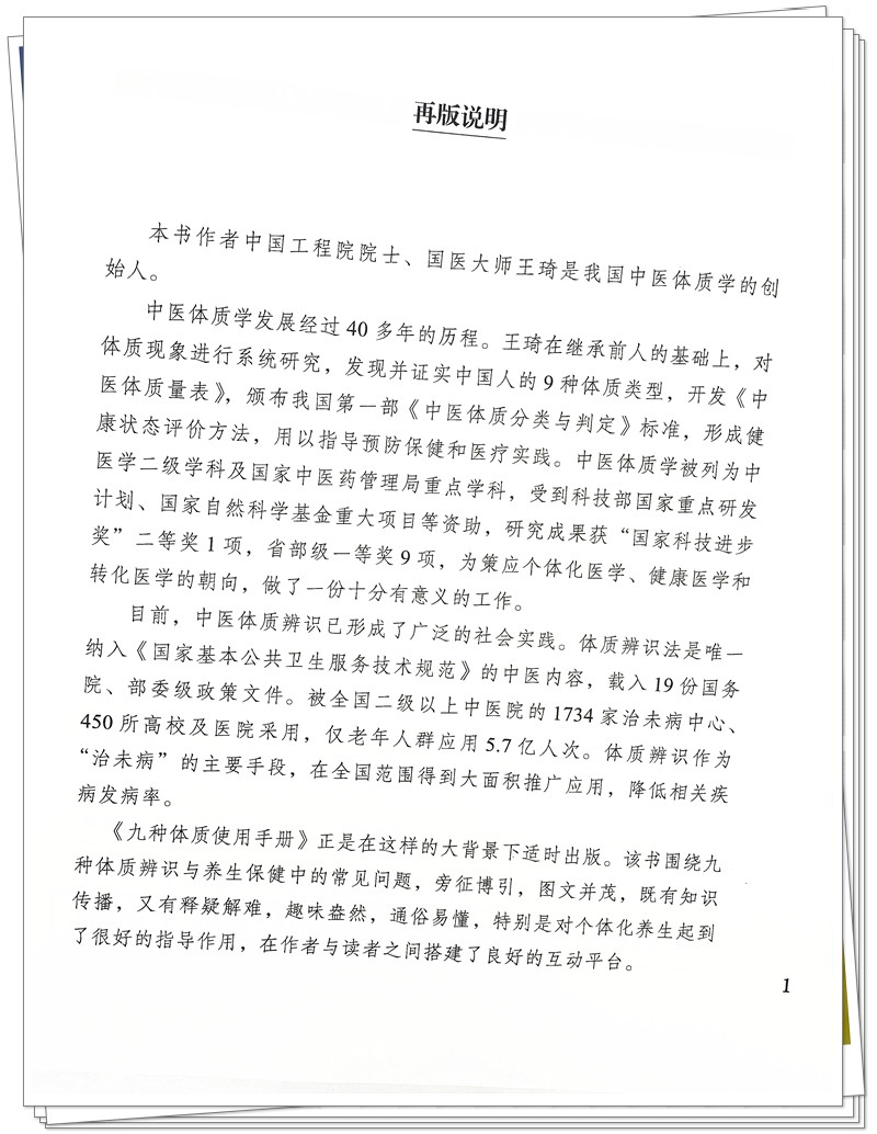 九种体质使用手册(第2二版)修订版 王琦 著 中国中医药出版社