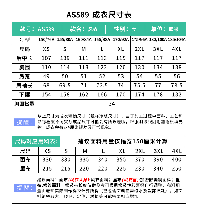 裁缝学苑AS589韩系中长款风衣纸样大外套女装打版裁剪样板图纸