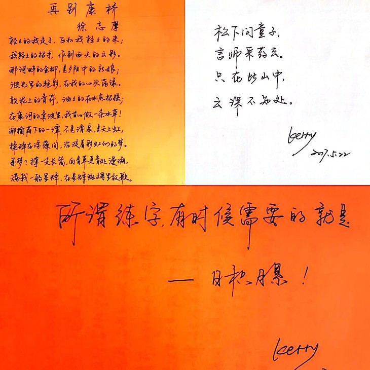 "三人行"十宫格硬笔书法速成培训创始人。发明的"三人行"十宫格硬笔书法,30小时写好硬笔字,书法界的又一创新,简单易懂,科学具体。最小五岁可学,一般认真的学生短期(一周)学习效果突飞猛进,判若两人。让漂亮工整的字迹伴随孩子的一生!