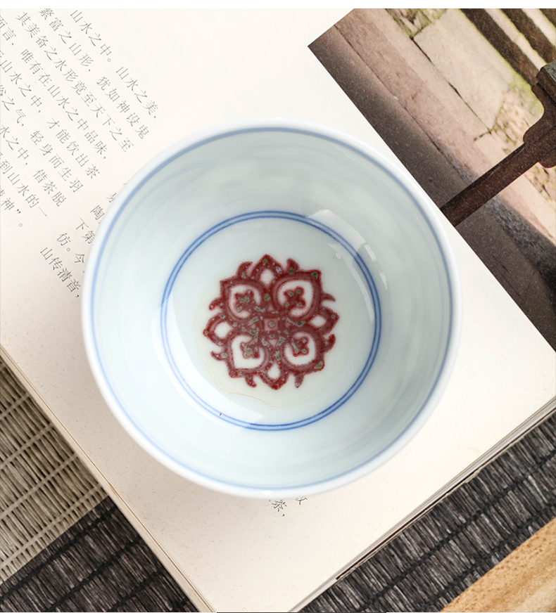 宝瓷林 | 漆红雕刻 · 粉彩开窗四君子杯 纯手工主人杯