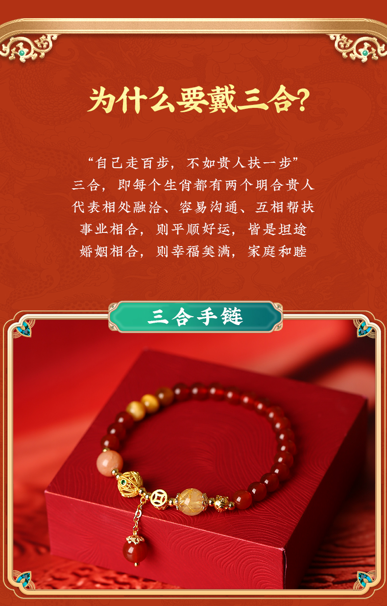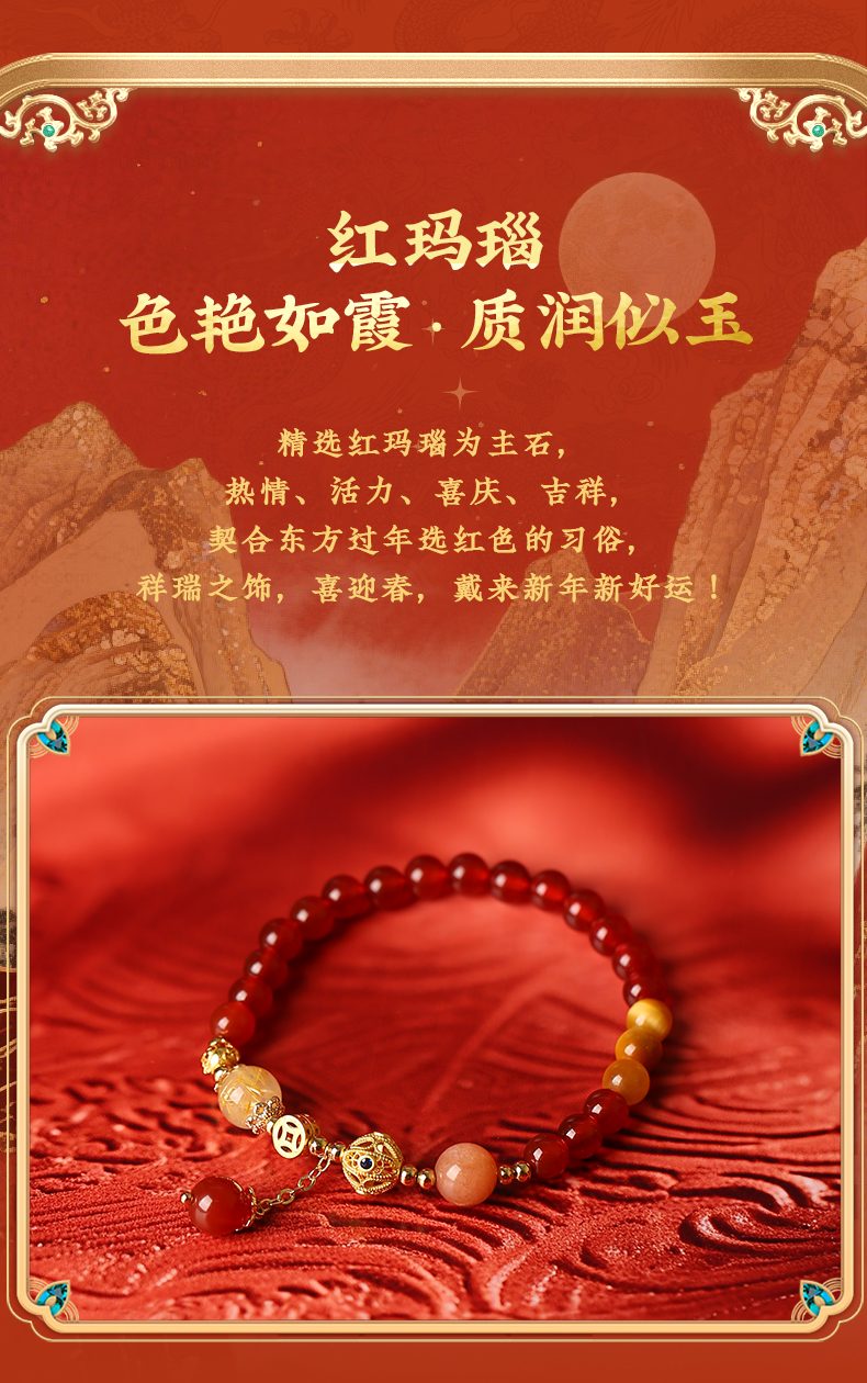灵机麦玲玲2026马年三合生肖红玛瑙手链属牛兔鼠