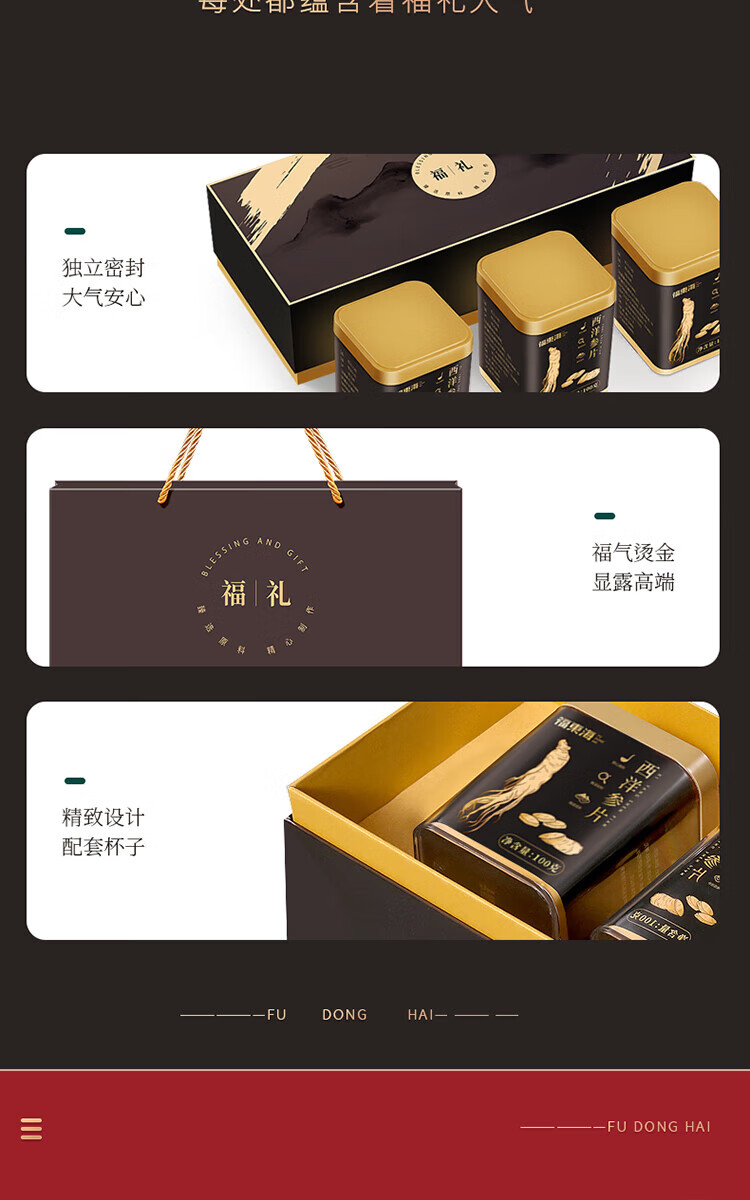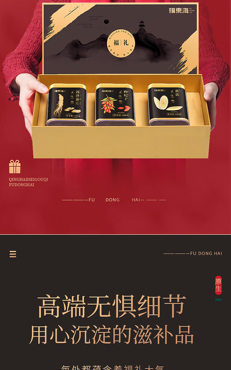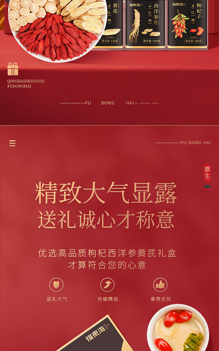 福东海 西洋参100克+黄芪130克+枸杞180克---(西洋参1.0-1.2薄片)(黄芪(中片)0.8-1.0)(枸杞(220粒))