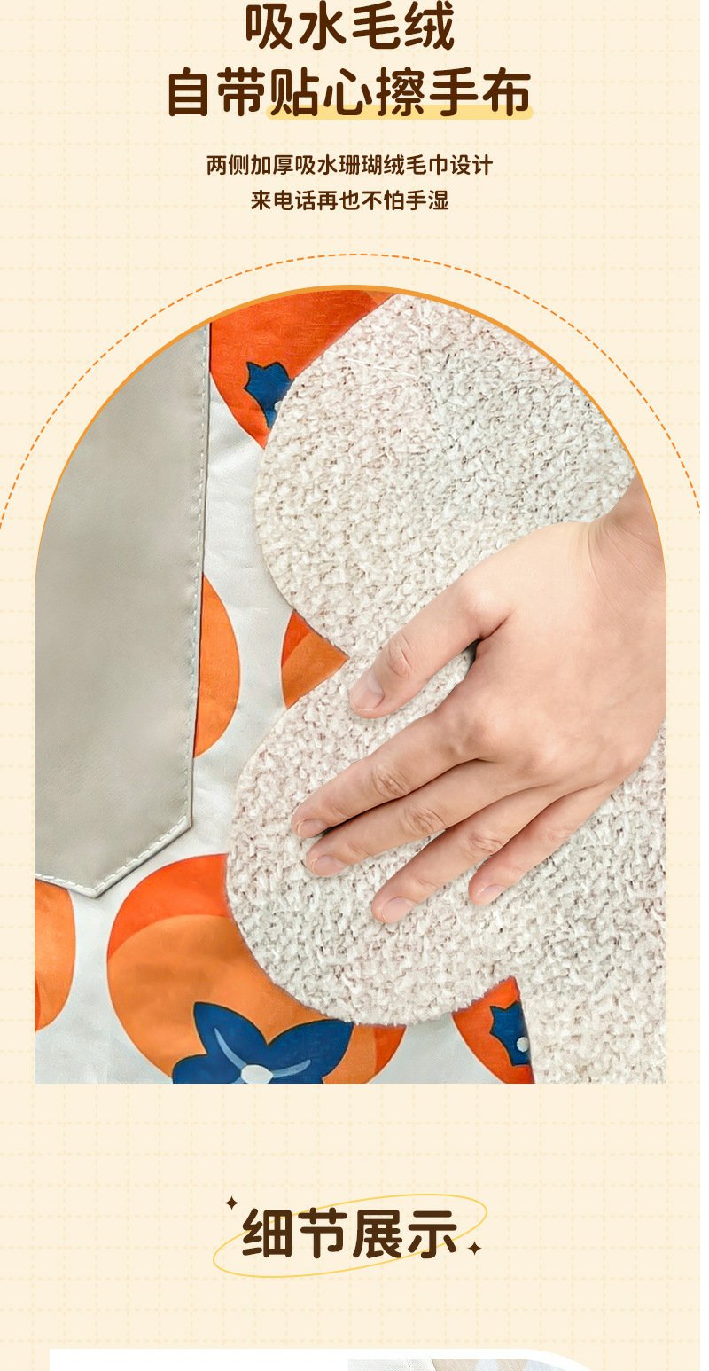 防水防油女围裙 家用厨房时尚珊瑚绒擦手1件