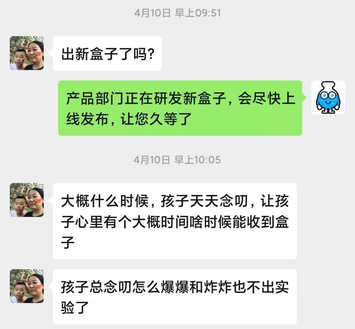 爆炸实验室已经10个月没有推出新的爆炸盒子了,这近一年的时间里,爆爆不断的收到家长的留言:“爆爆,还有新的爆炸盒子吗?”“爆爆,什么时候推出新的爆炸盒子呀?”