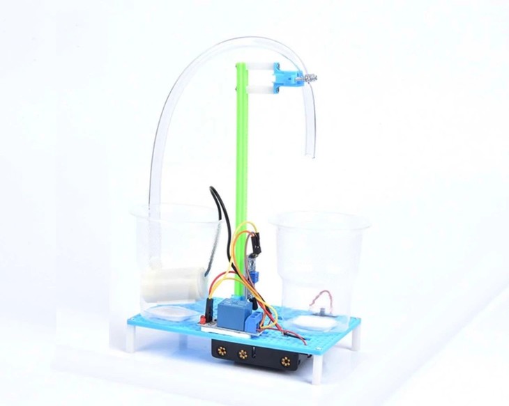 饮水机也是生活中最常见的电器之一,科技发展越来越快,很多家用电器都变得越来越智能。做了个传统家用电器电风扇后,我们就来动手制作一个智能饮水机。只要把杯子靠近饮水机出水口,饮水机就会自动感应出水。完成了这个发明,孩子内心的发明家梦想可就越来越贴近啦!