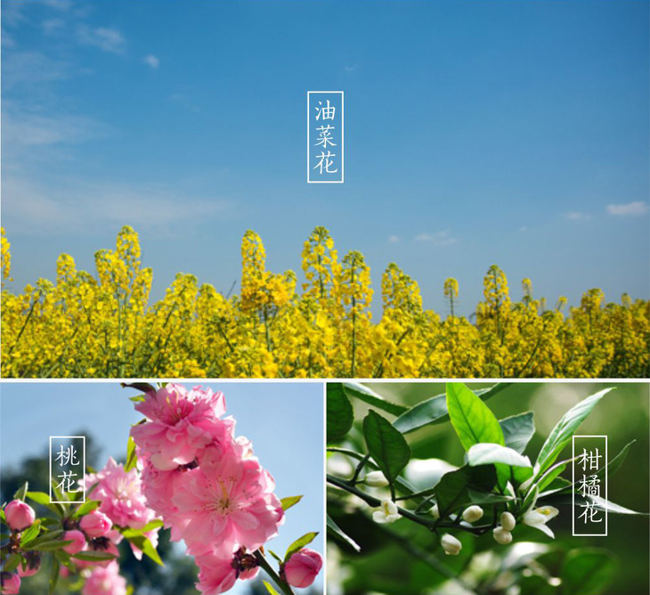 油菜花结束在3月20号以后,此时,柑桔花开,这时的蜂蜜将呈现另一种状态,但是它的品质依然很好,天然波美度高达41度,这一瓶蜂蜜中夹杂着油菜花,桃花及柑桔等多种花香。