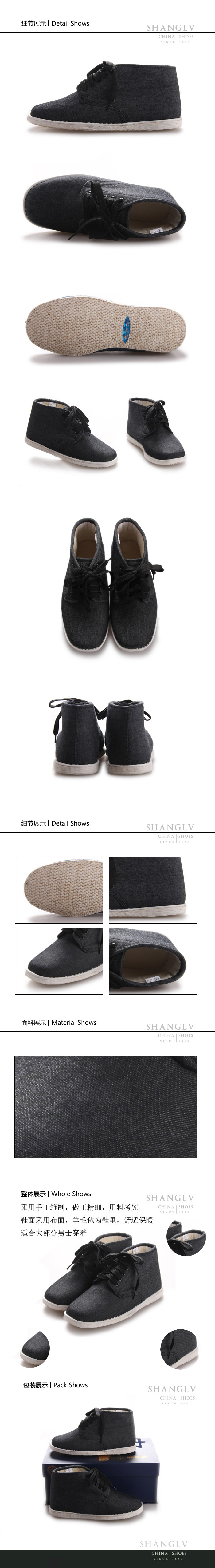 内联升男鞋手工棉鞋千层底冬季保暖牛仔五眼系带棉鞋8138A