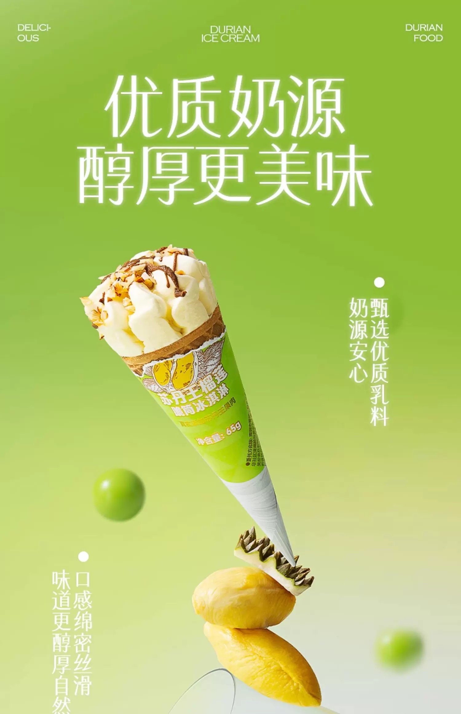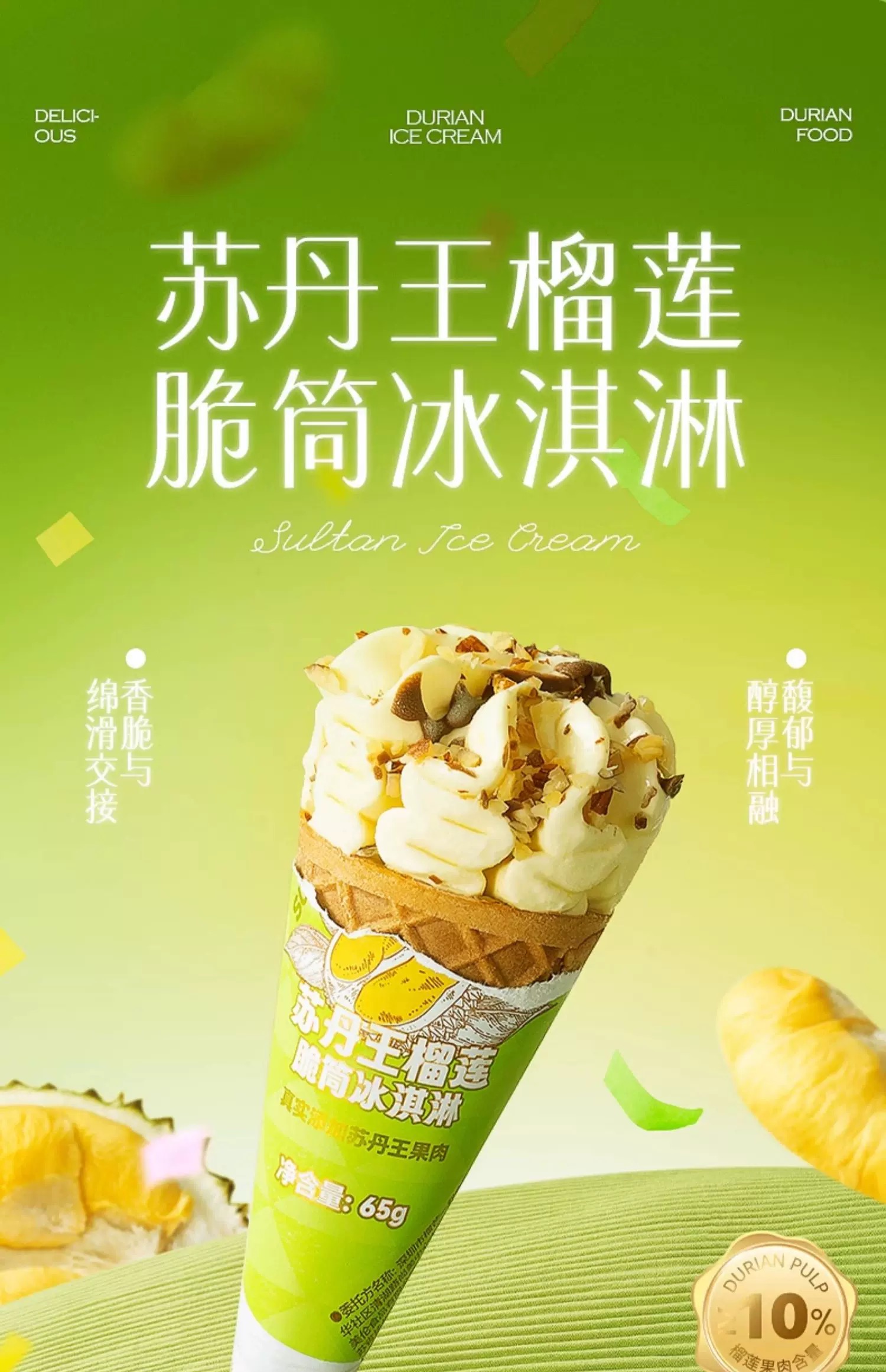【榴芒一刻】苏丹王榴莲脆筒冰淇淋65g/支 脆滑交织 美味真实浓郁