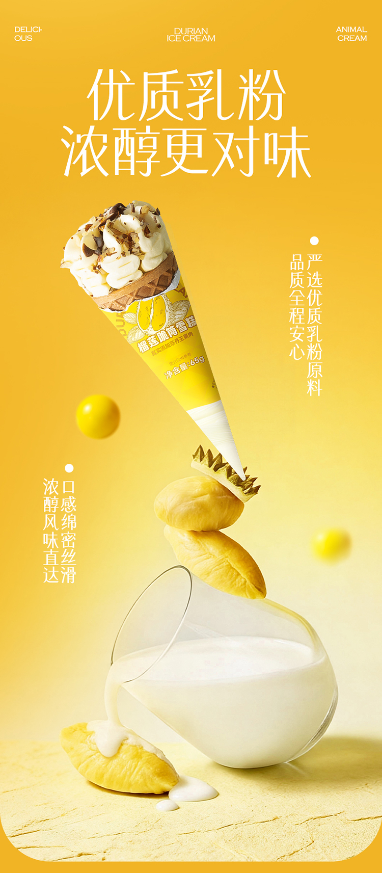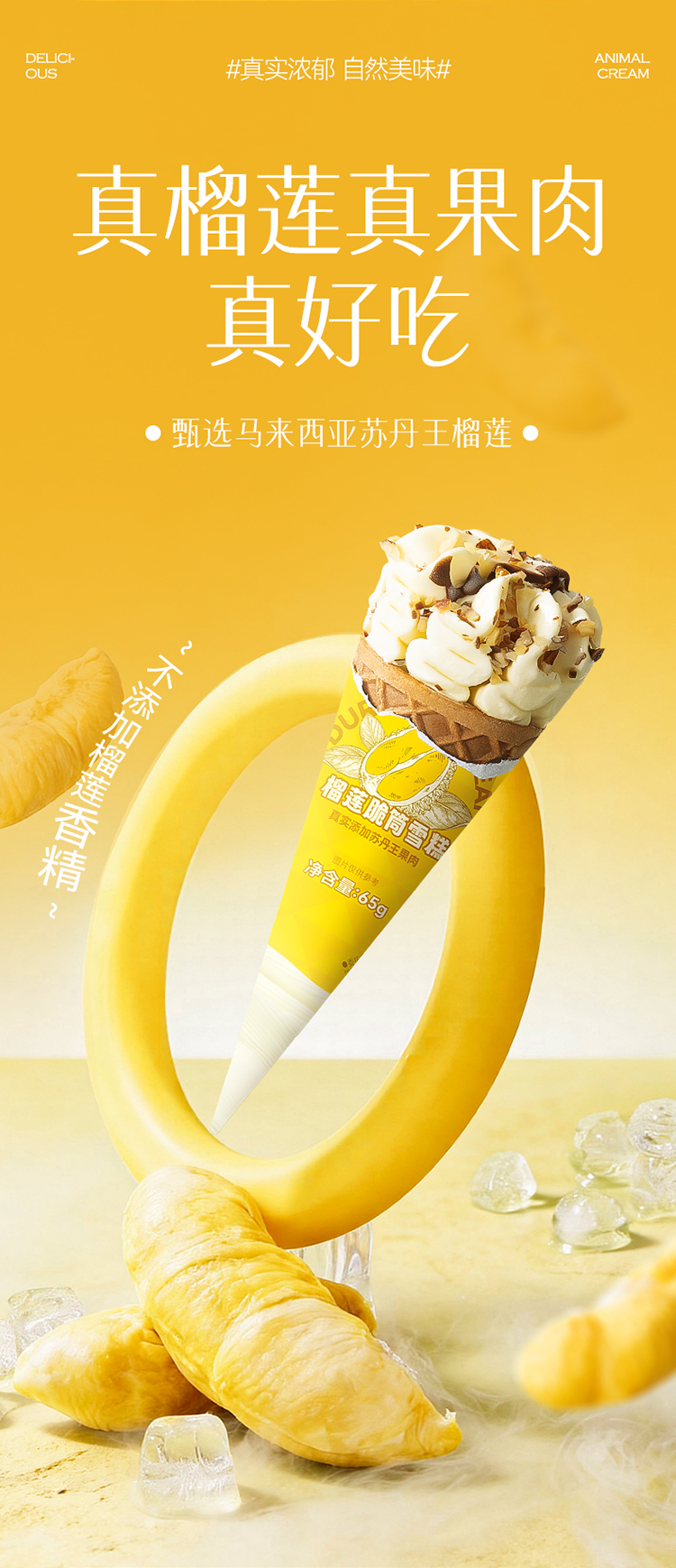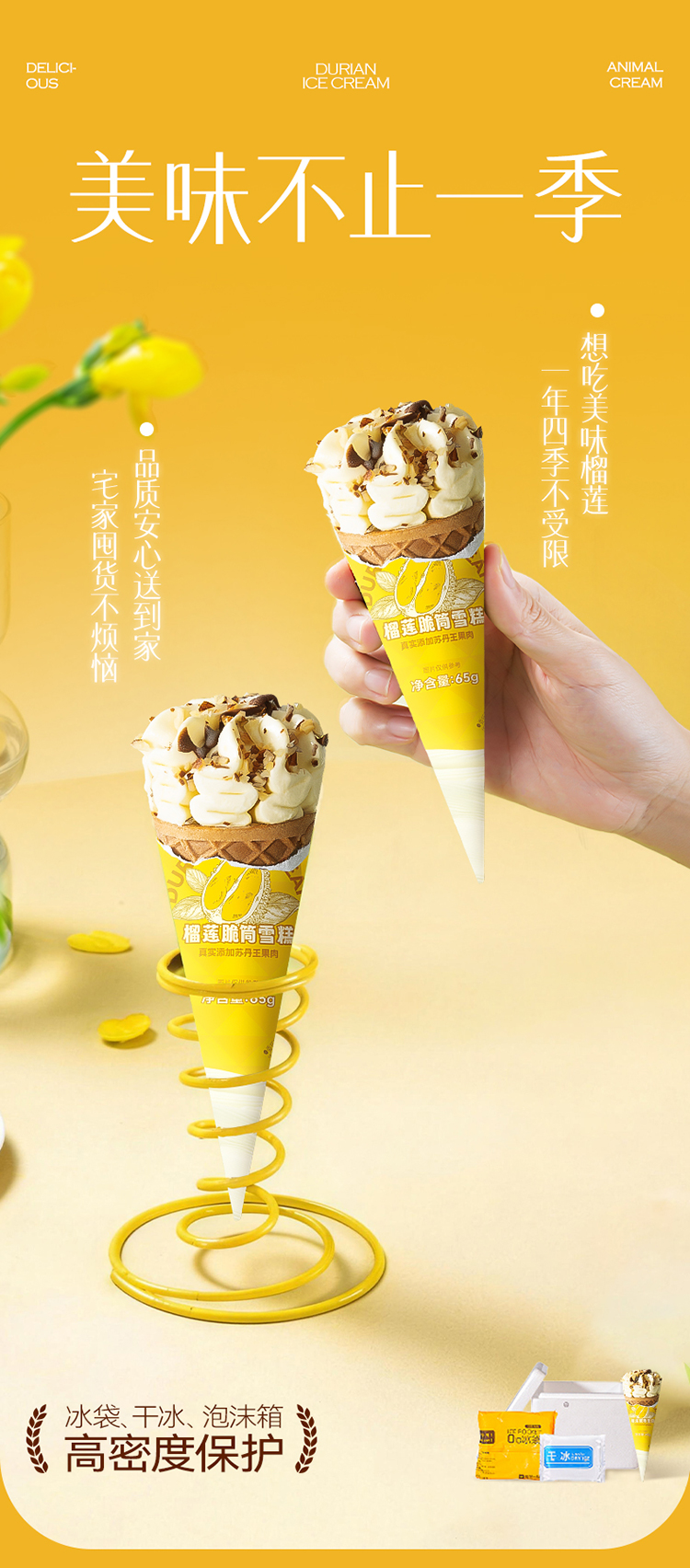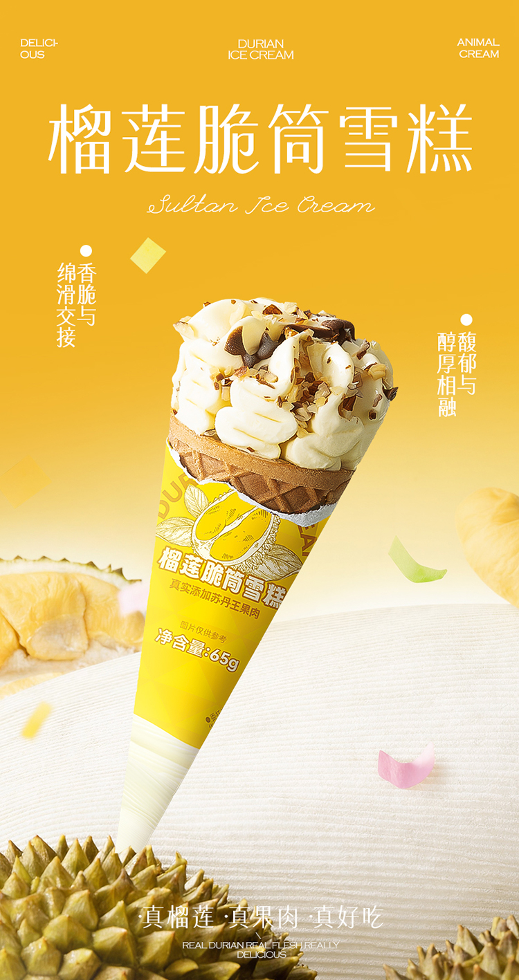 【榴芒一刻】苏丹王榴莲脆筒冰淇淋65g/支 脆滑交织 美味真实浓郁 HY