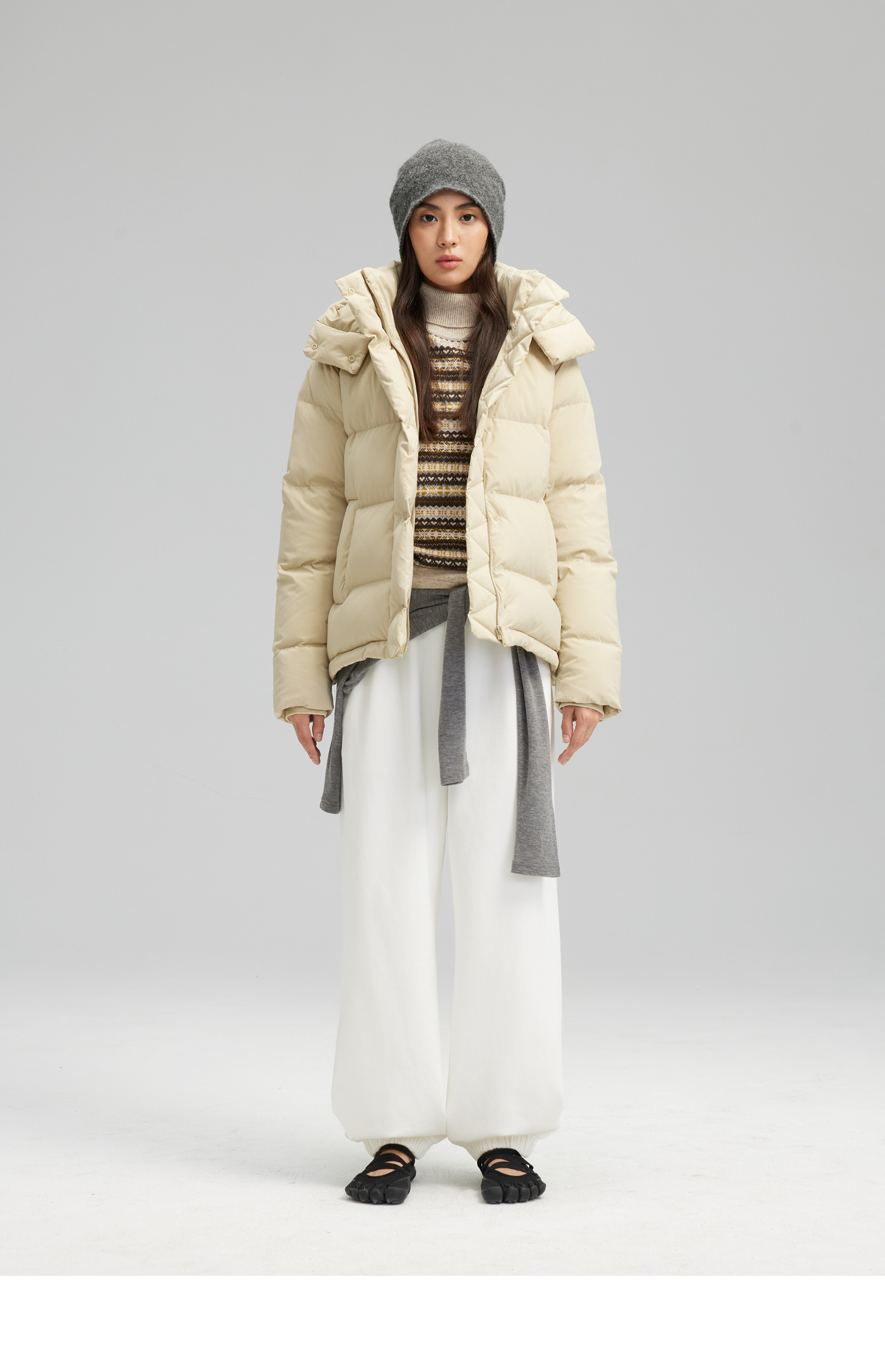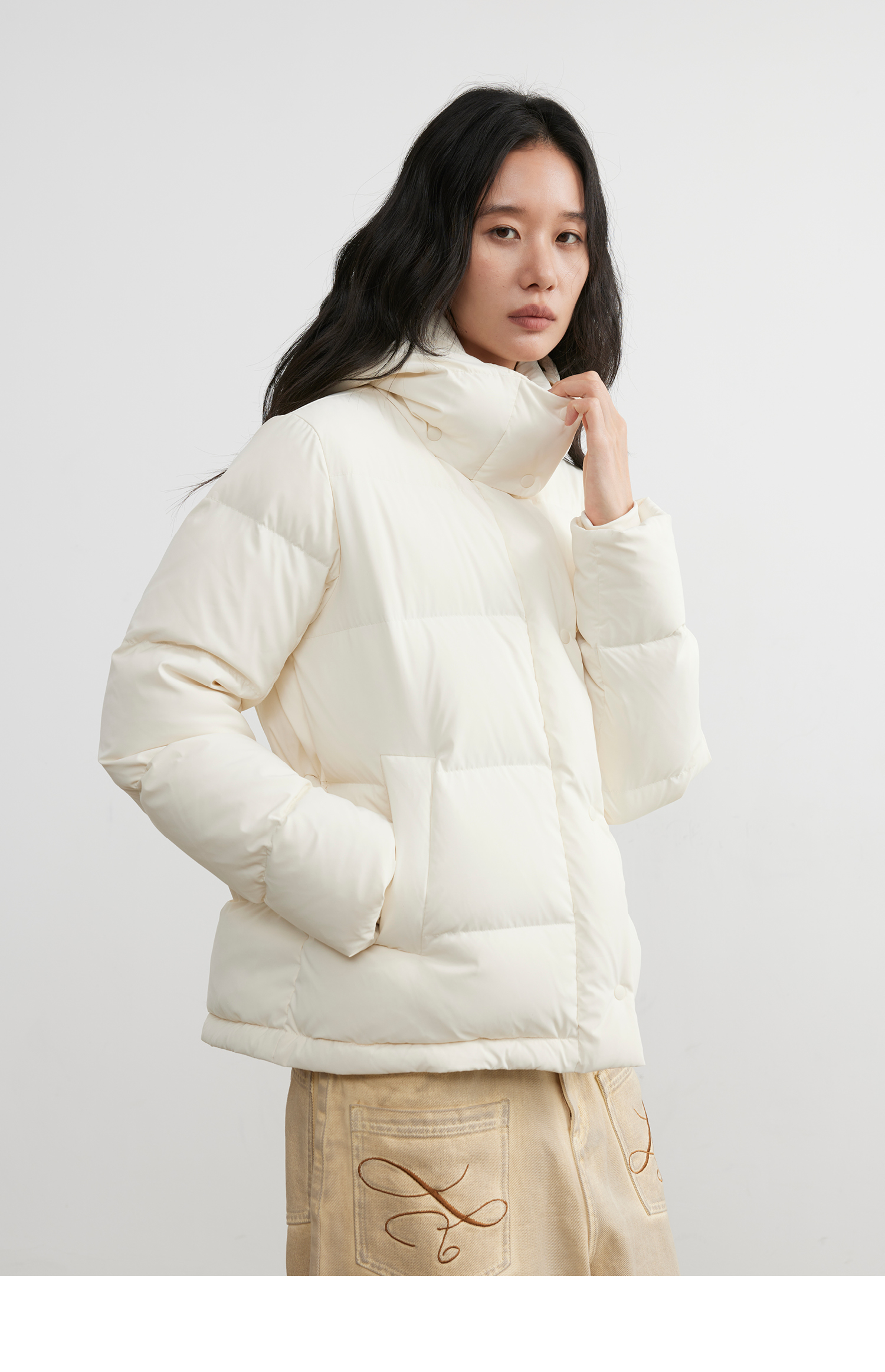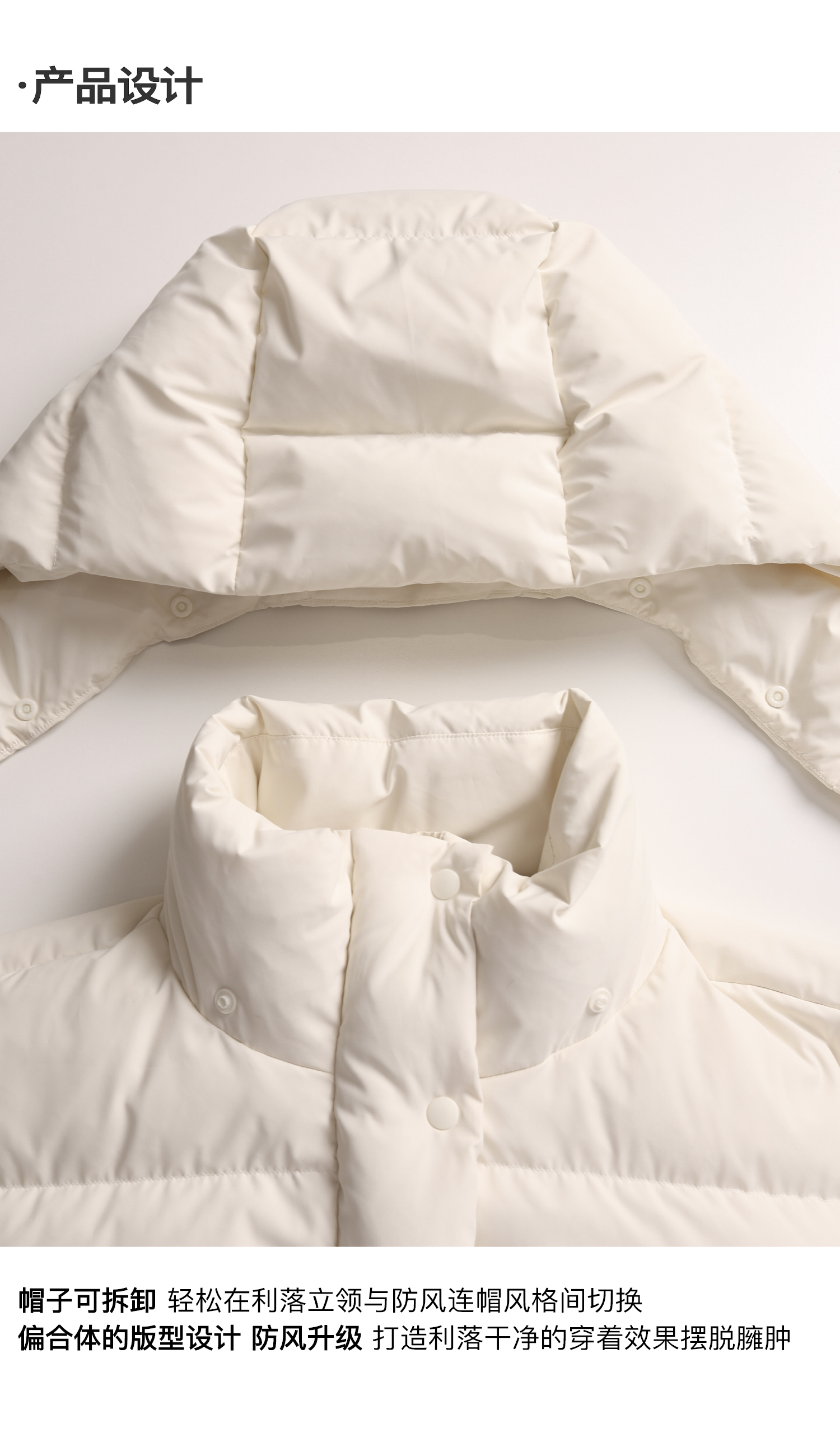 素舶 90白鸭绒可拆卸帽子后收腰显瘦抗皱运动休闲感羽绒服