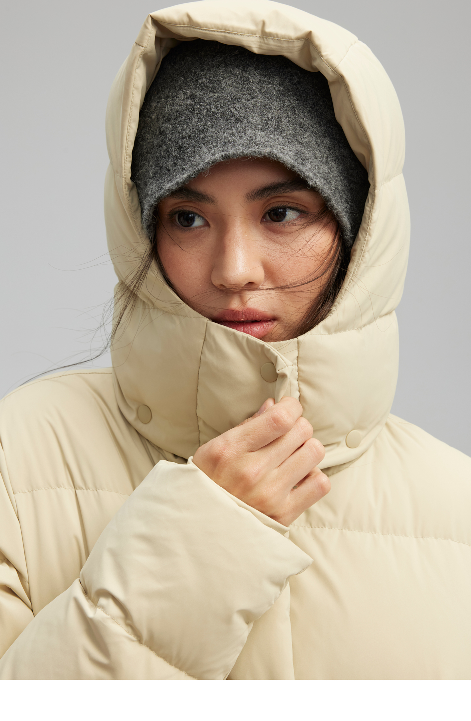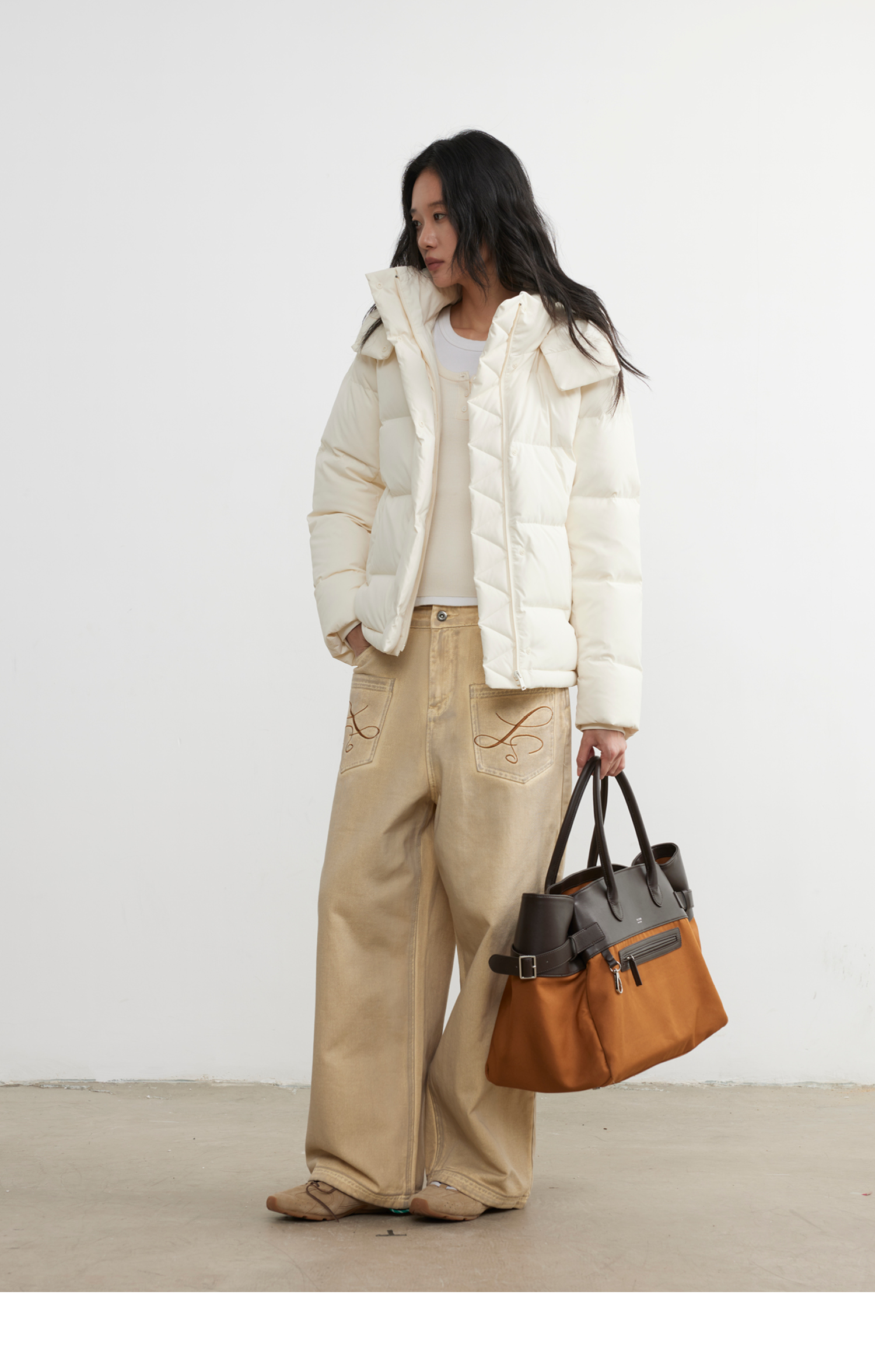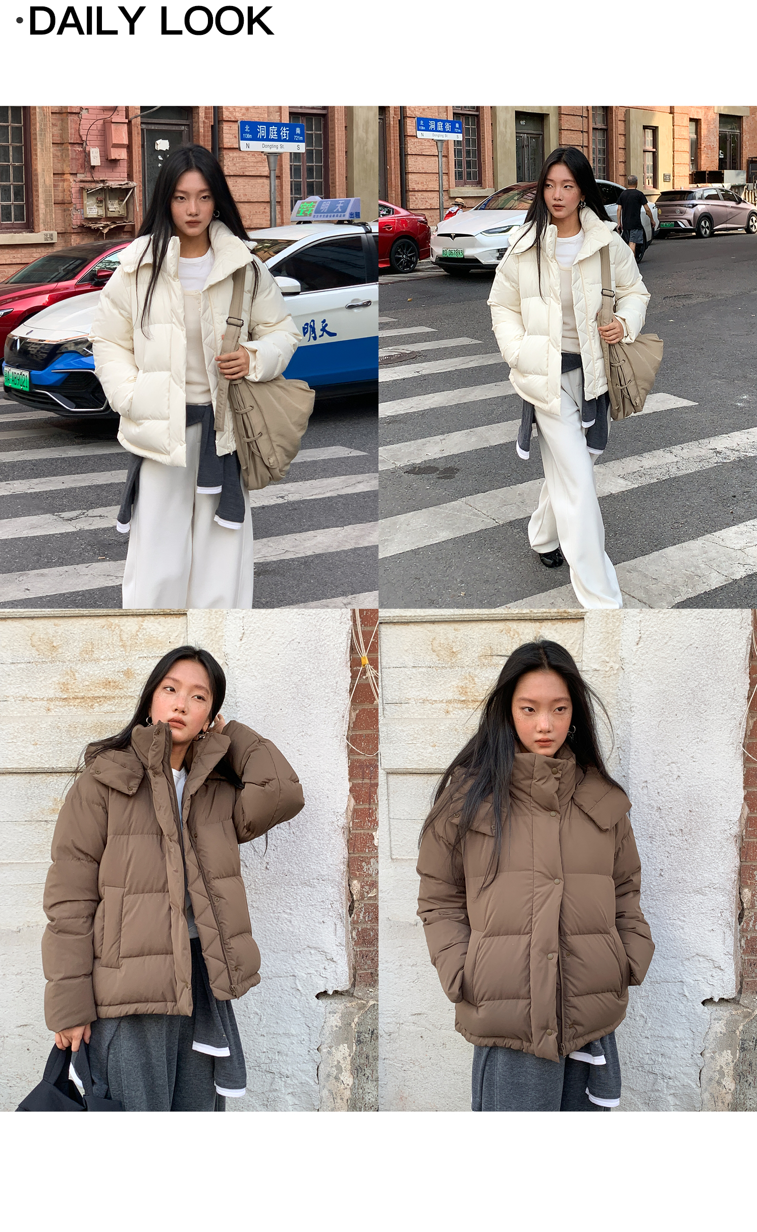 素舶 90白鸭绒可拆卸帽子后收腰显瘦抗皱运动休闲感羽绒服
