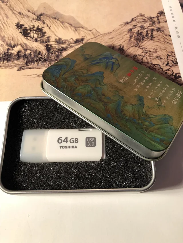古画U盘包装盒,以千里江山图的一段作封面,美观又大气!