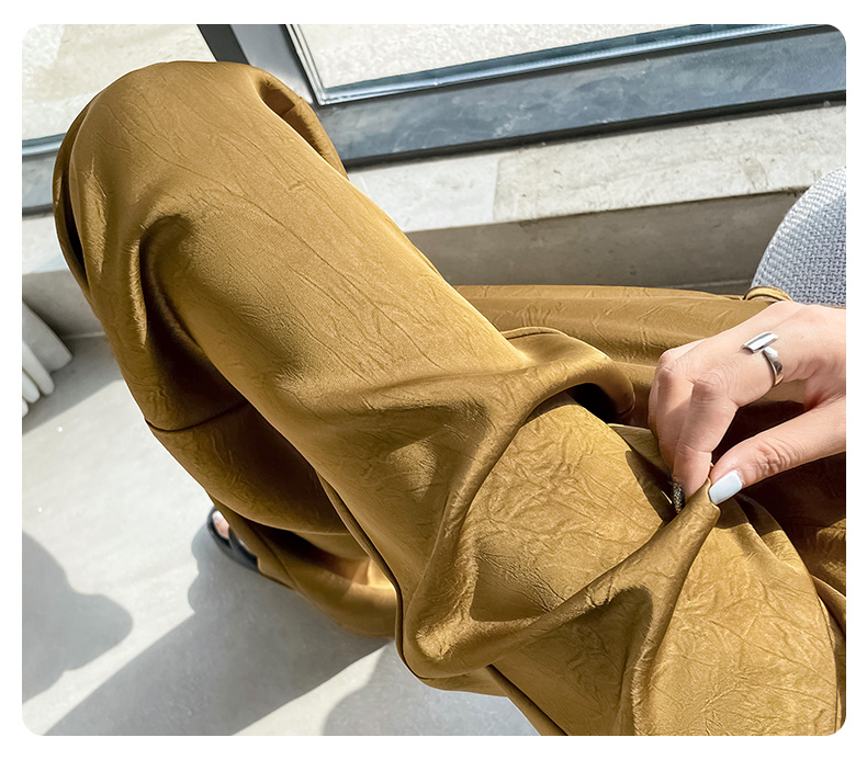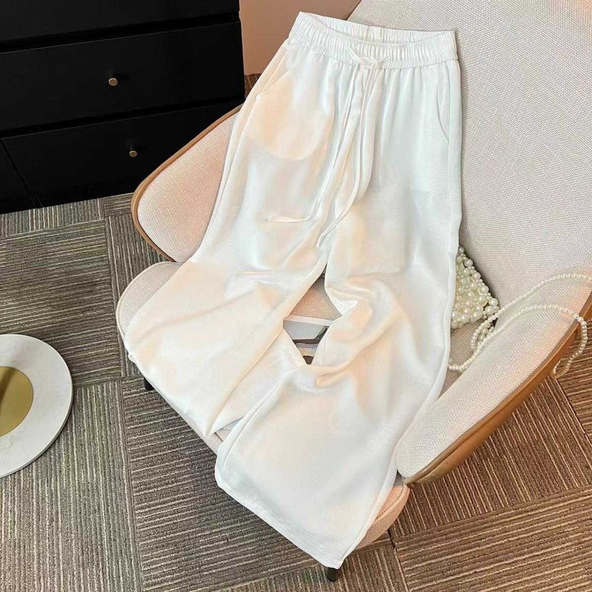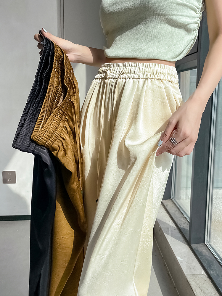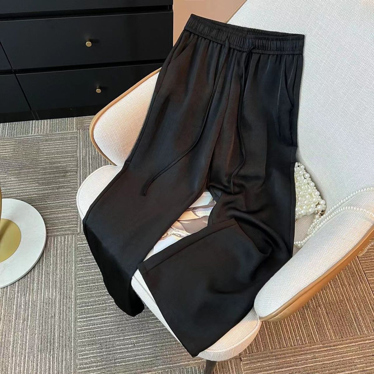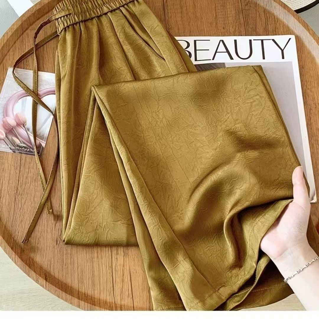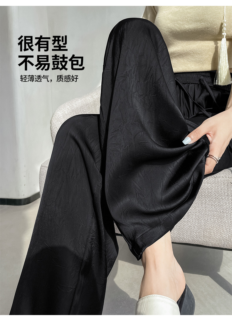 【醋酸缎面直筒裤】新中式国风提花缎面阔腿垂坠感女裤夏季薄款高腰冰丝休闲直筒裤
