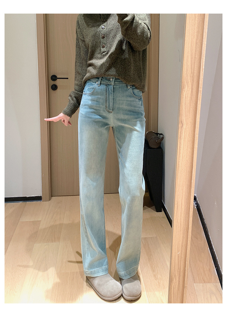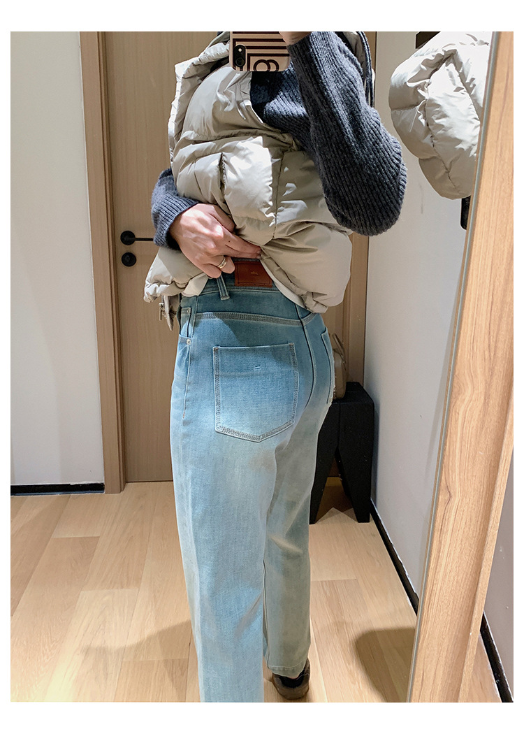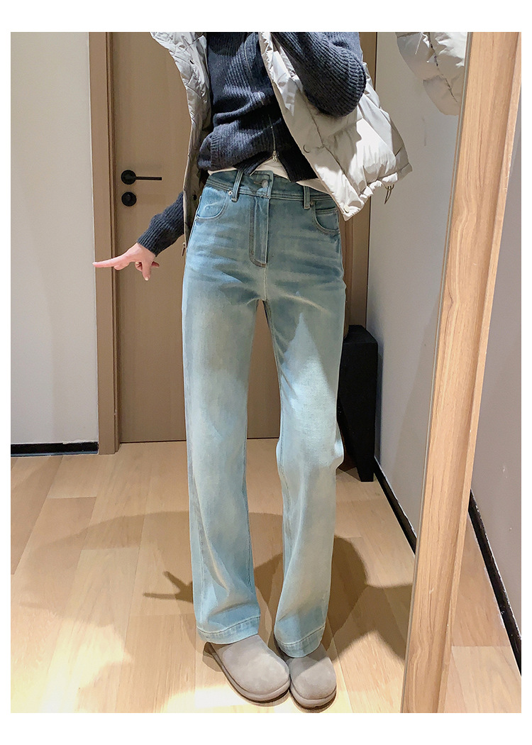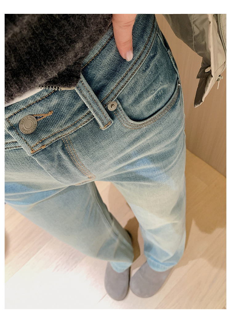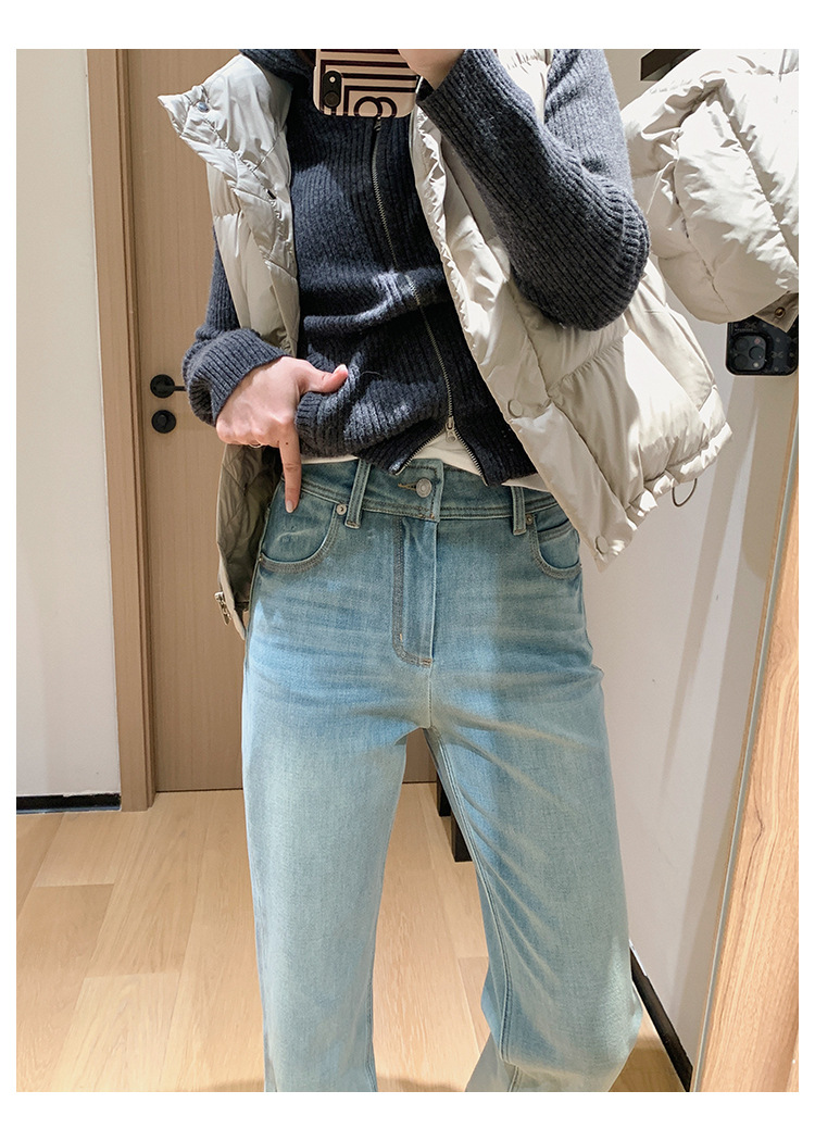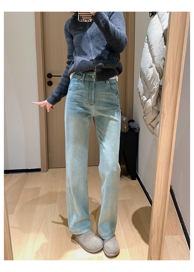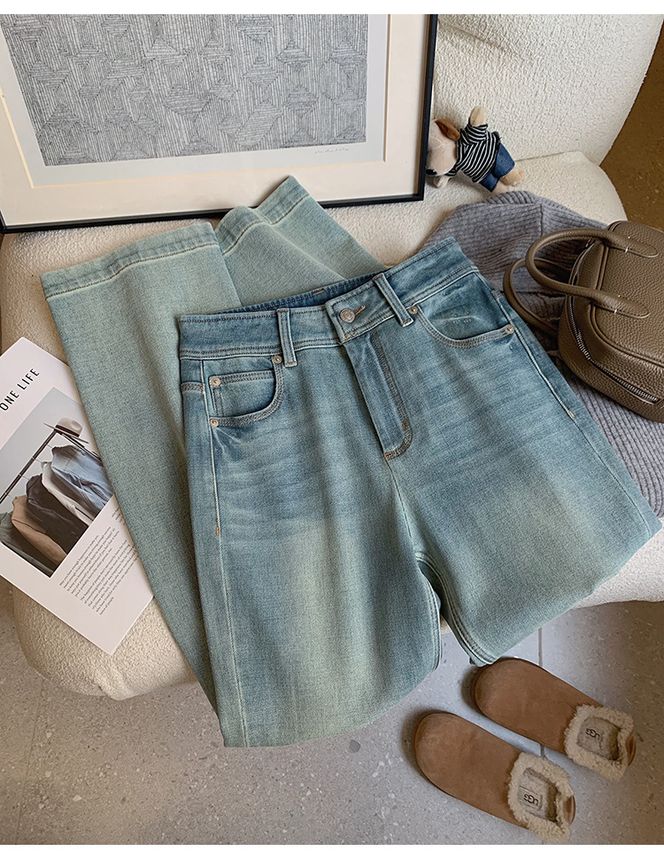 双版本舒弹抓绒360立体水洗宽腰直筒牛仔裤!
