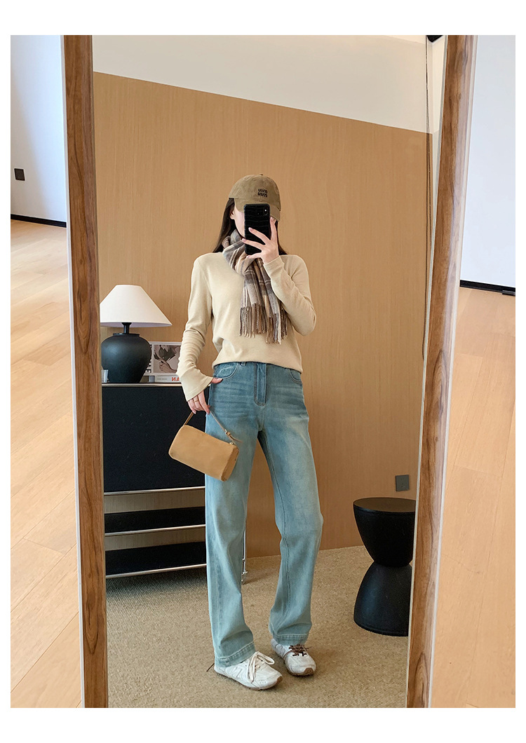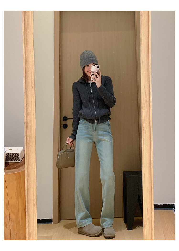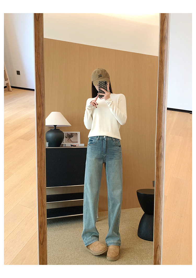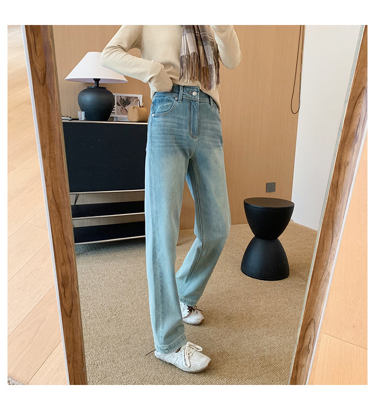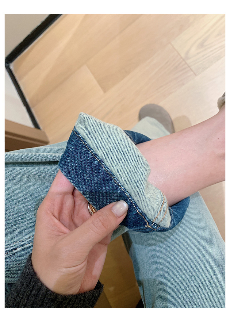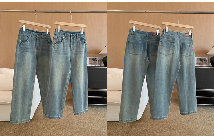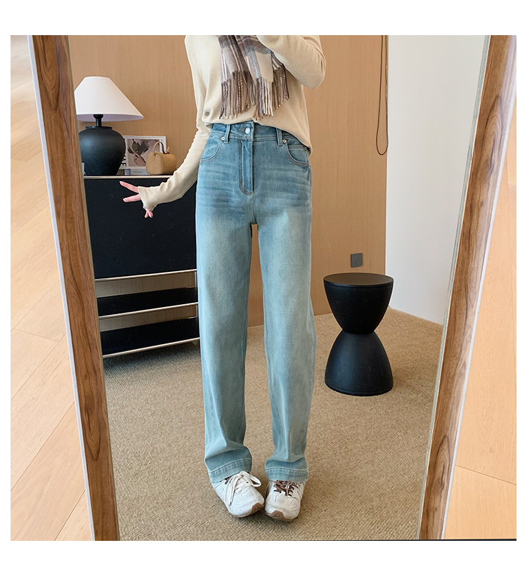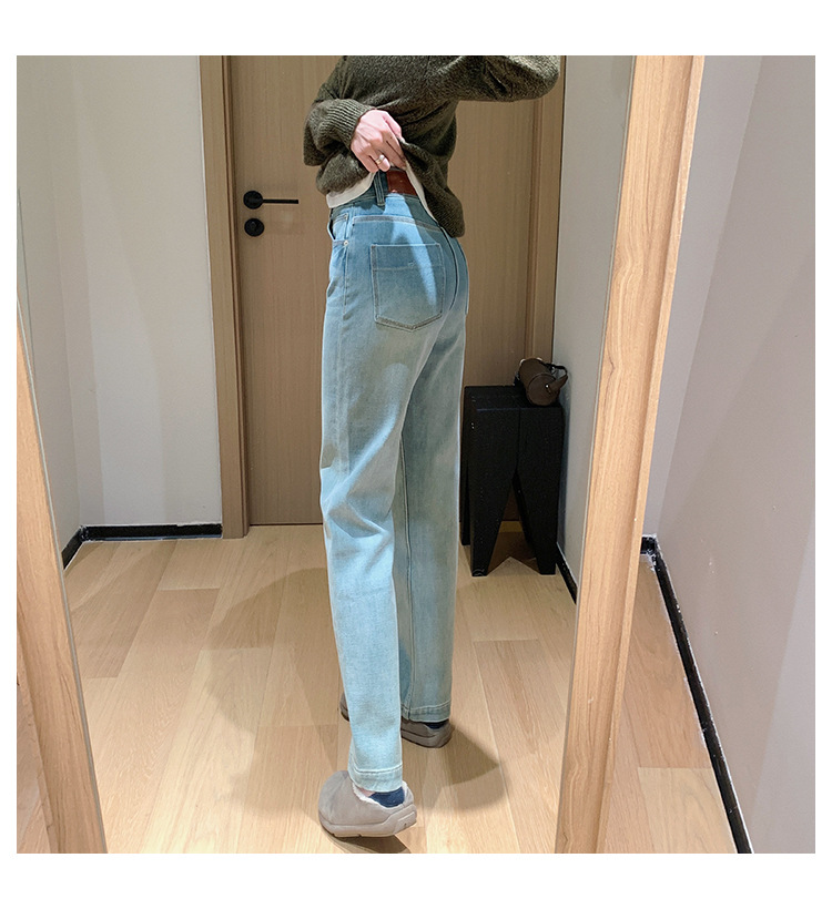 双版本舒弹抓绒360立体水洗宽腰直筒牛仔裤!