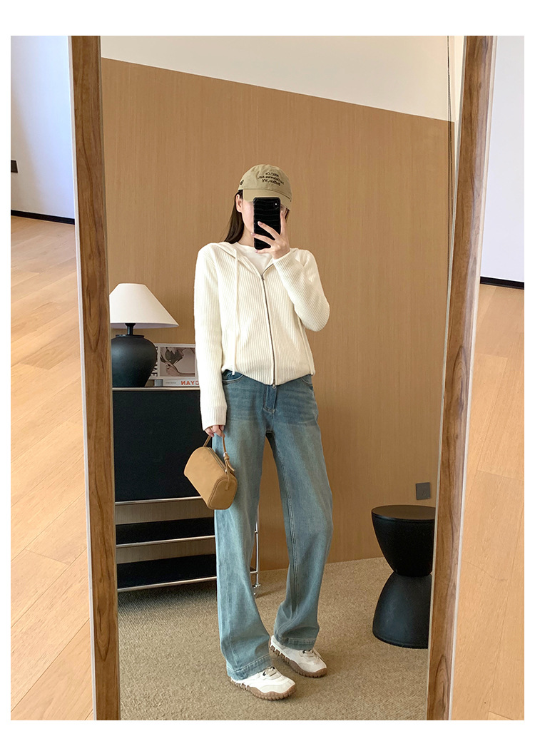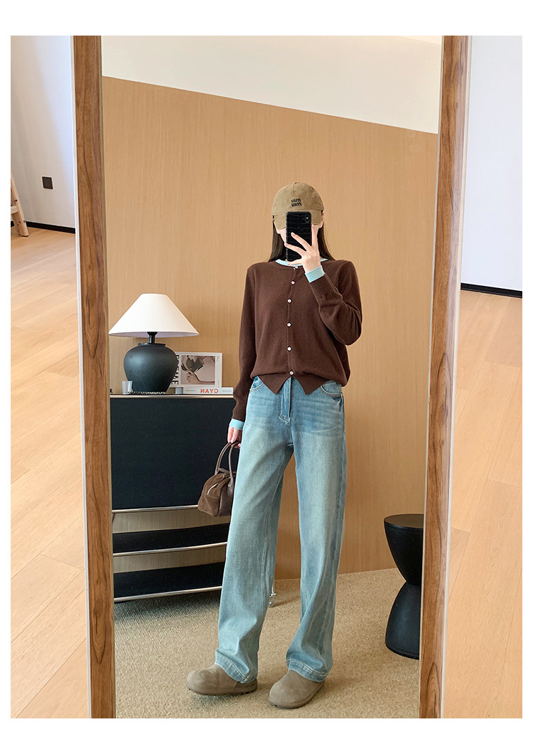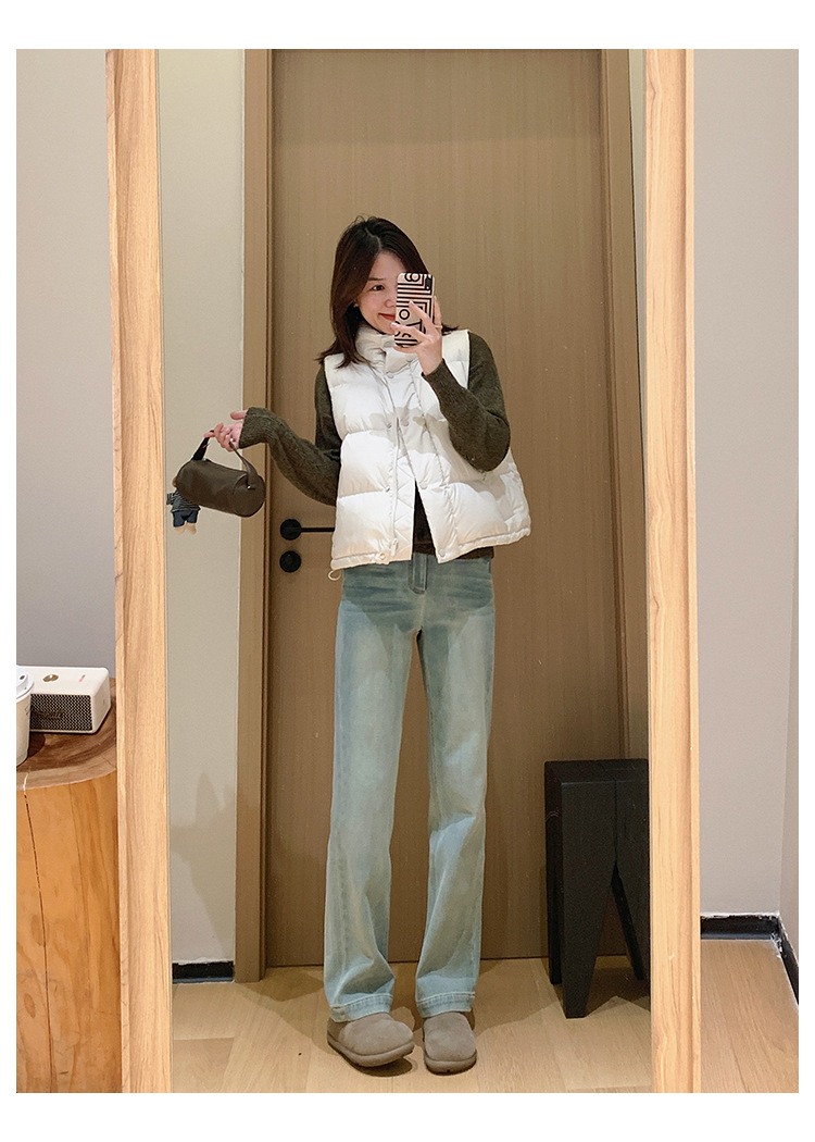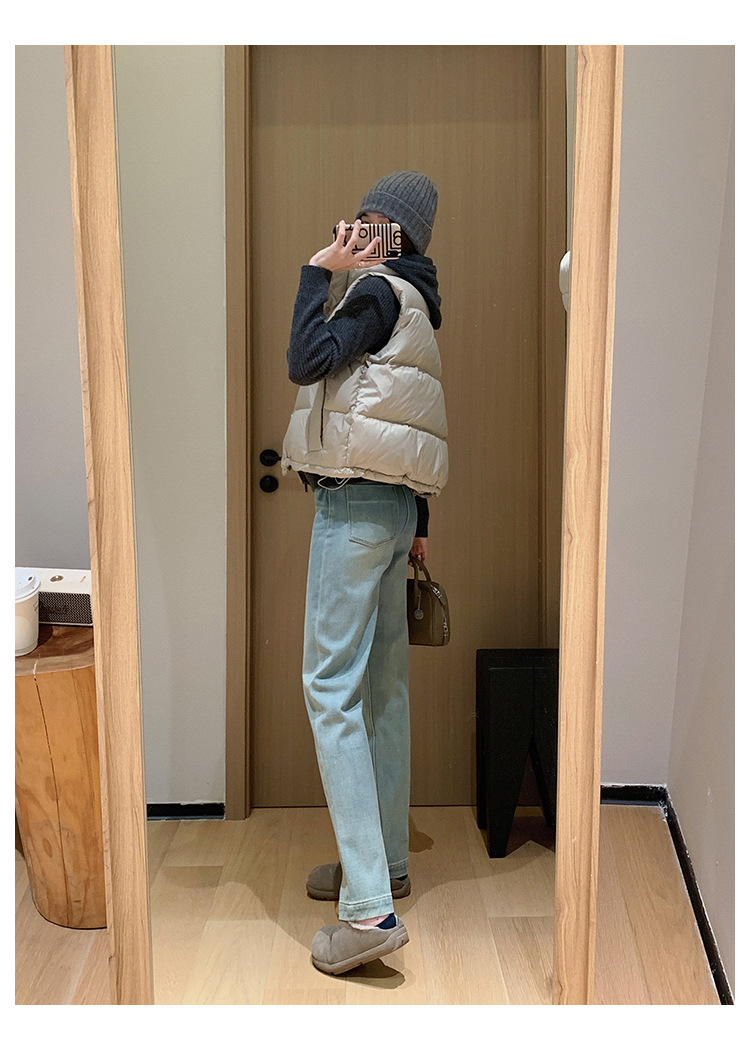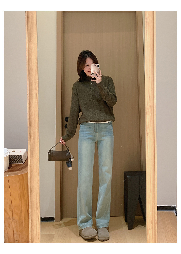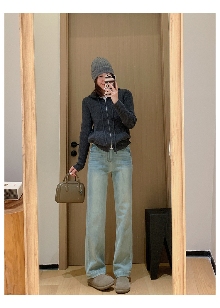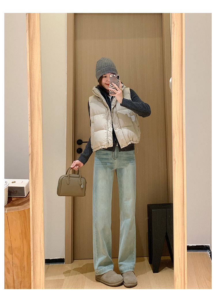 双版本舒弹抓绒360立体水洗宽腰直筒牛仔裤!