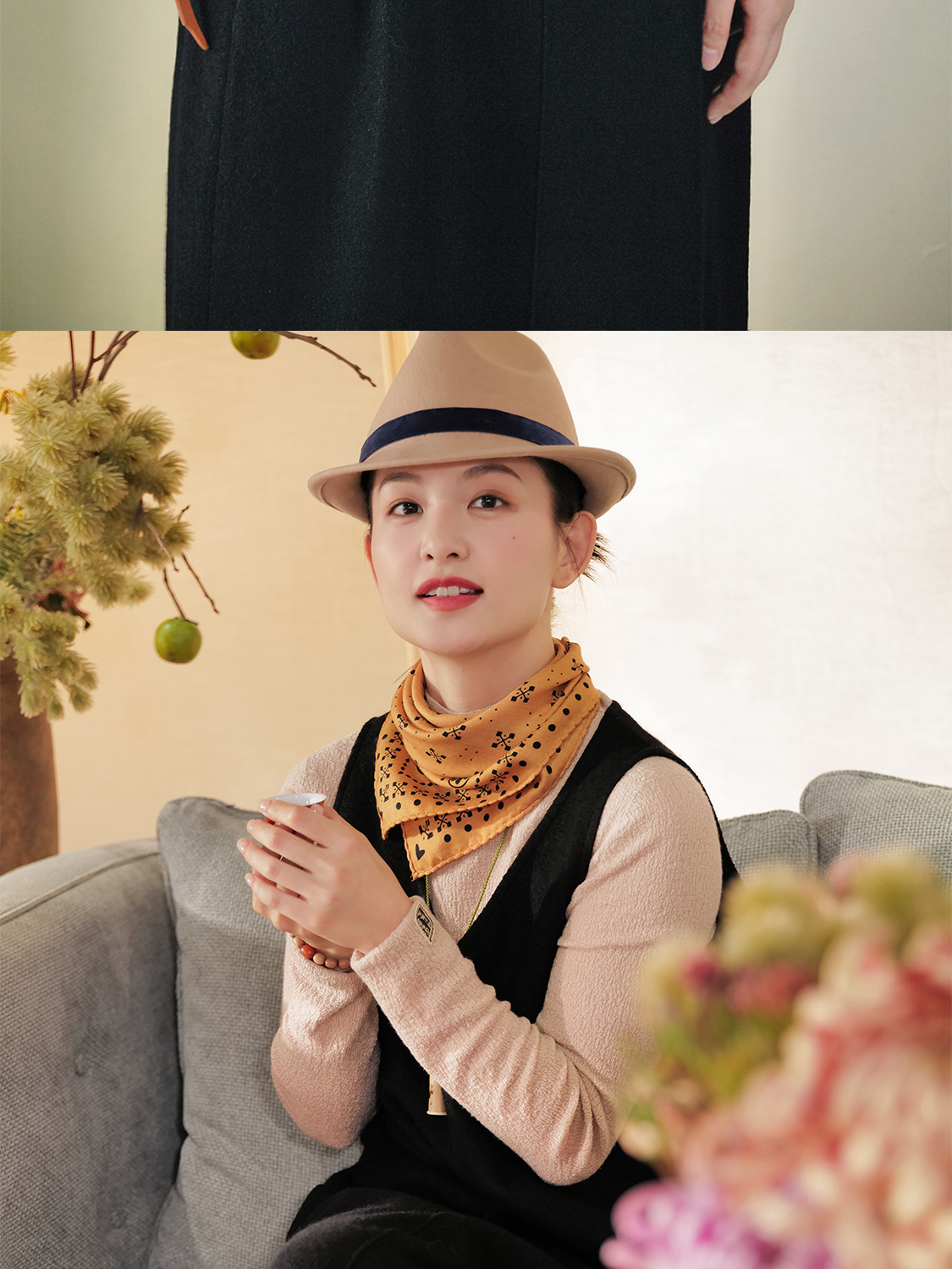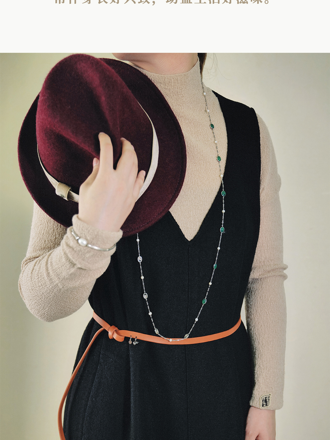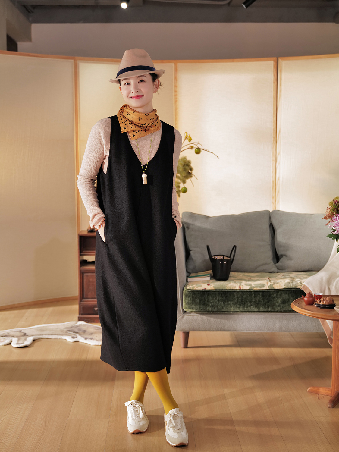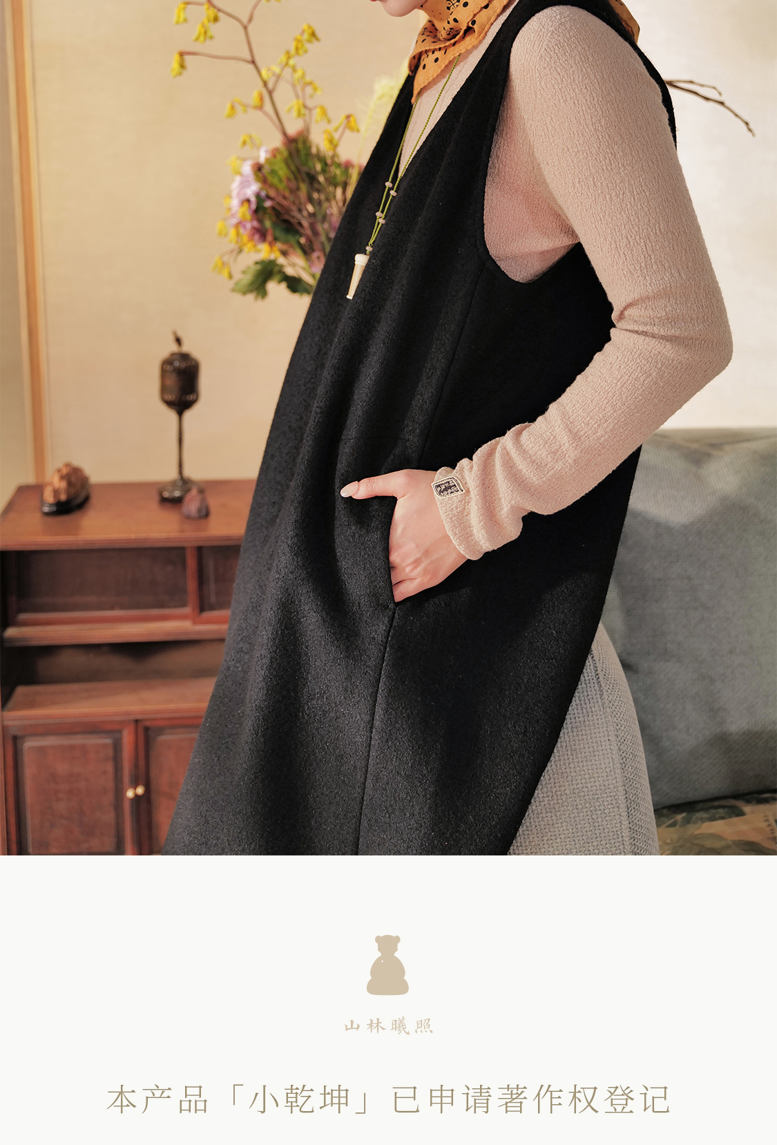 小乾坤 好事花生 饰绣弧心领背心式连身裙 山林曦照
