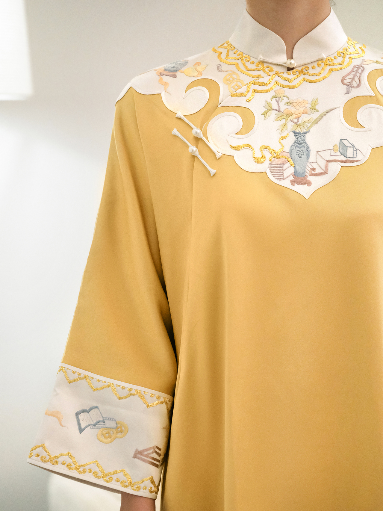 盛唐牡丹大师系列-卢梅红 | 金缕真丝如意纹手绣长裙