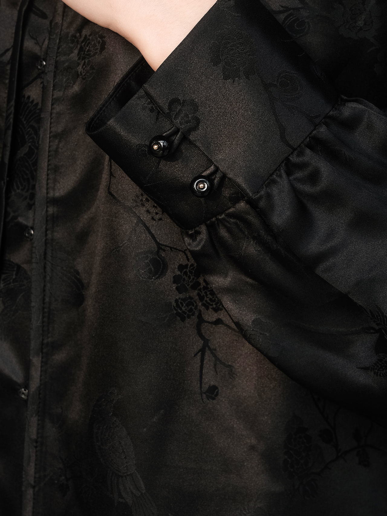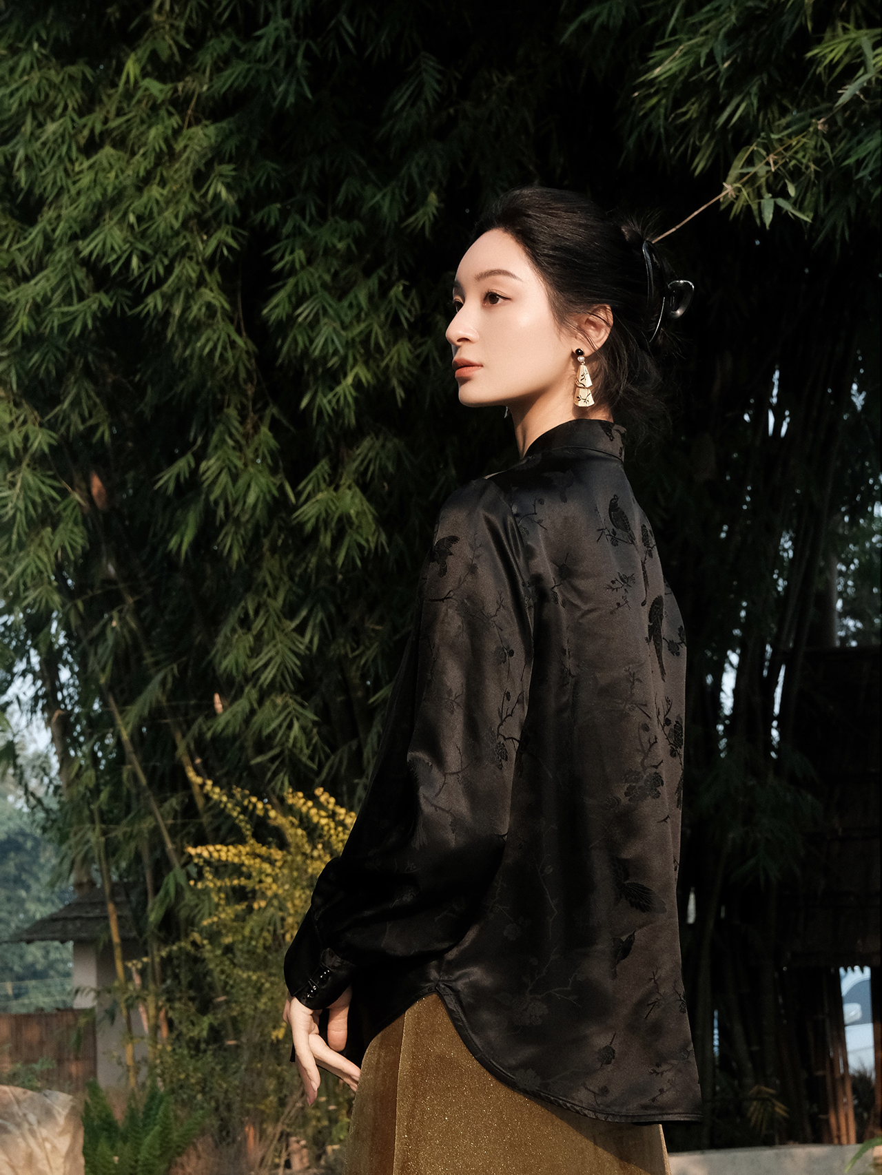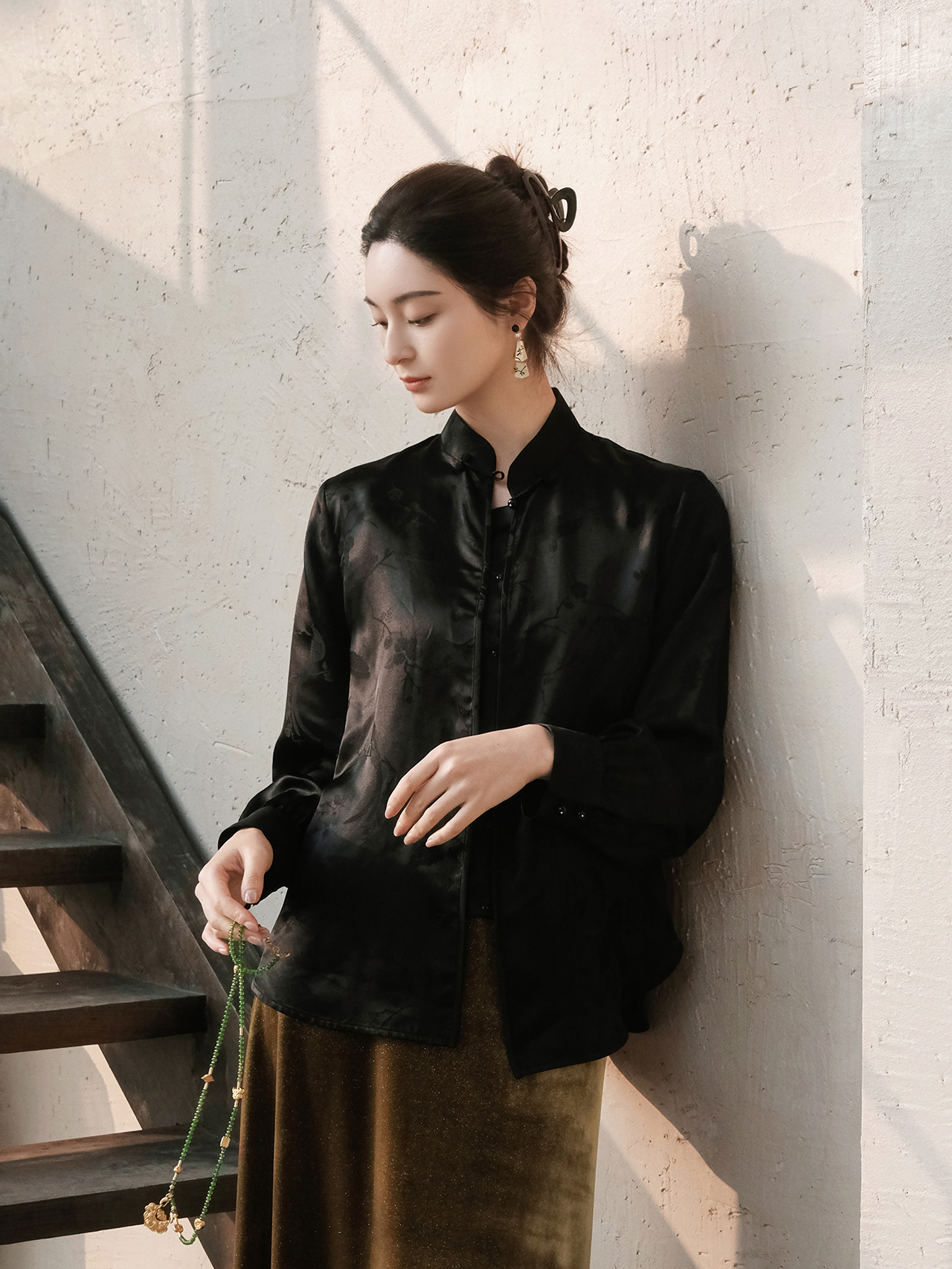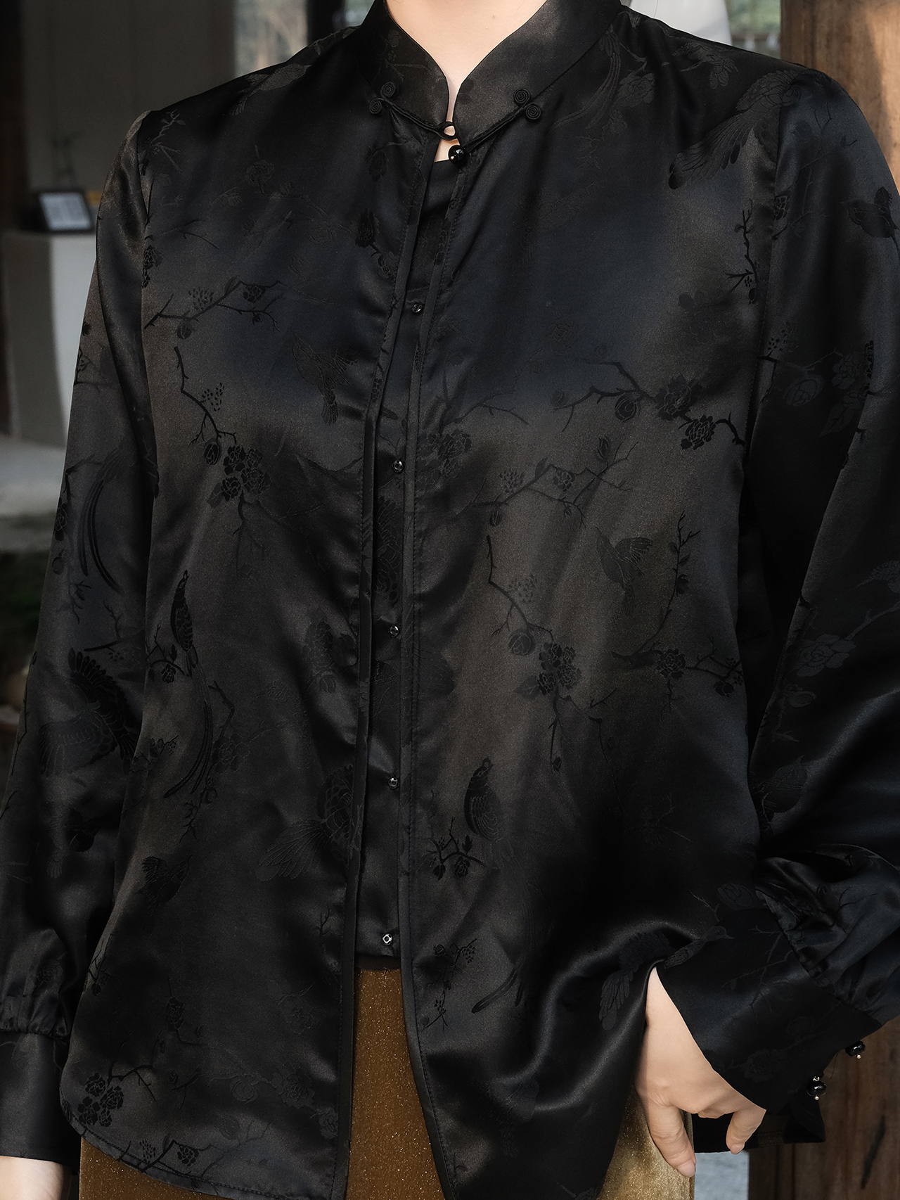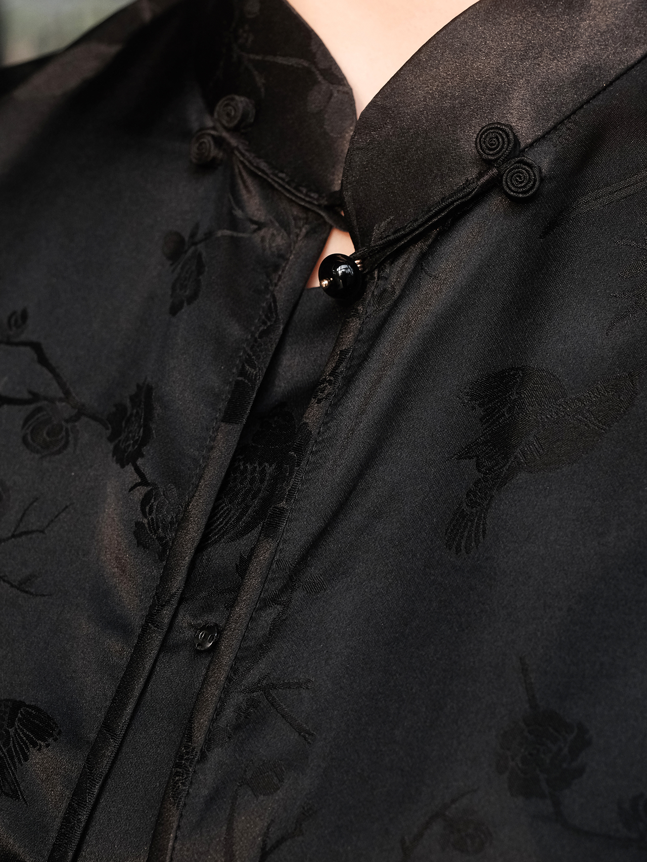 盛唐婧 | 新中式桑蚕丝百搭立领对襟衬衫-黑色