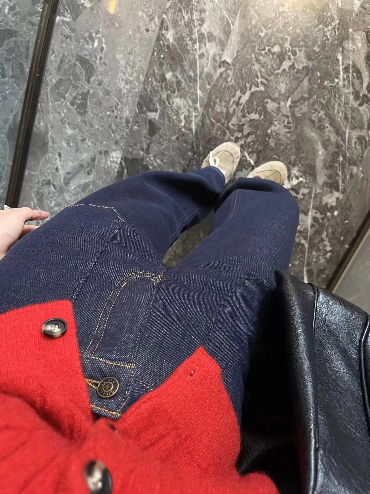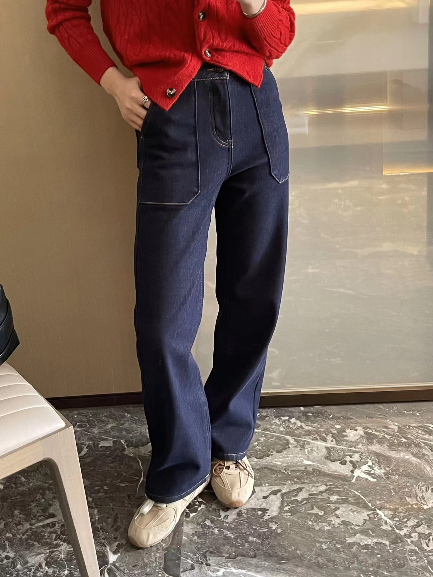 25秋冬加绒直筒裤复古深蓝色贴兜直筒裤 复古百搭 无敌好穿 这条牛仔裤无论从面料还是版型都下了功夫的,显瘦百搭不挑人~不用多安利啦 jue对的日常刚需裤!