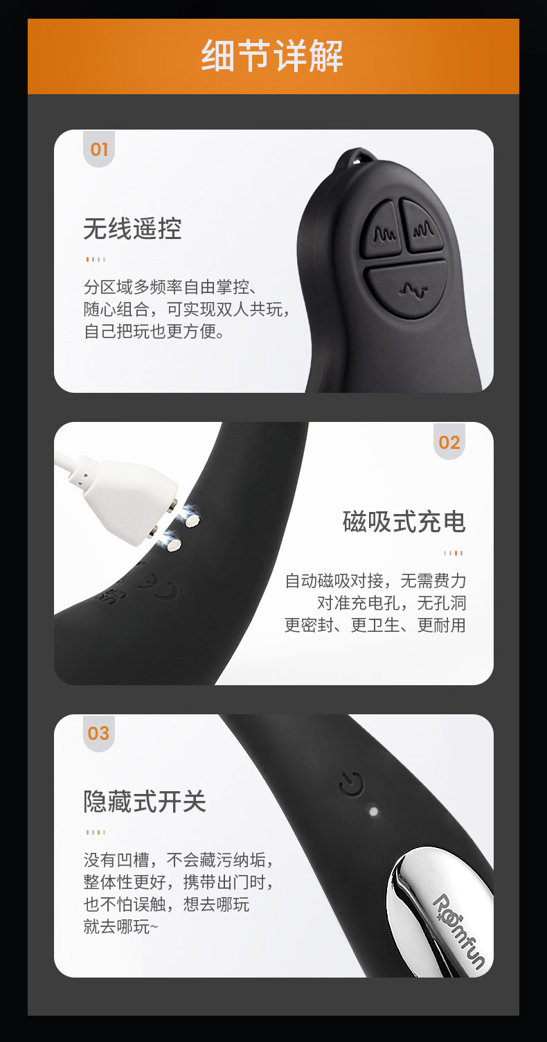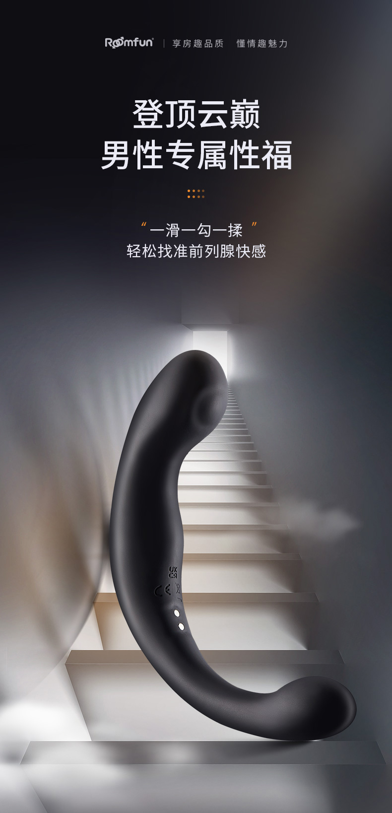 roomfun前列腺按摩器高潮神器男用扣动震动肛塞后庭肛门自慰棒