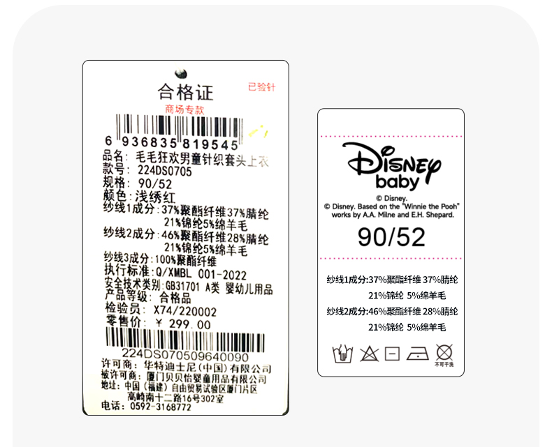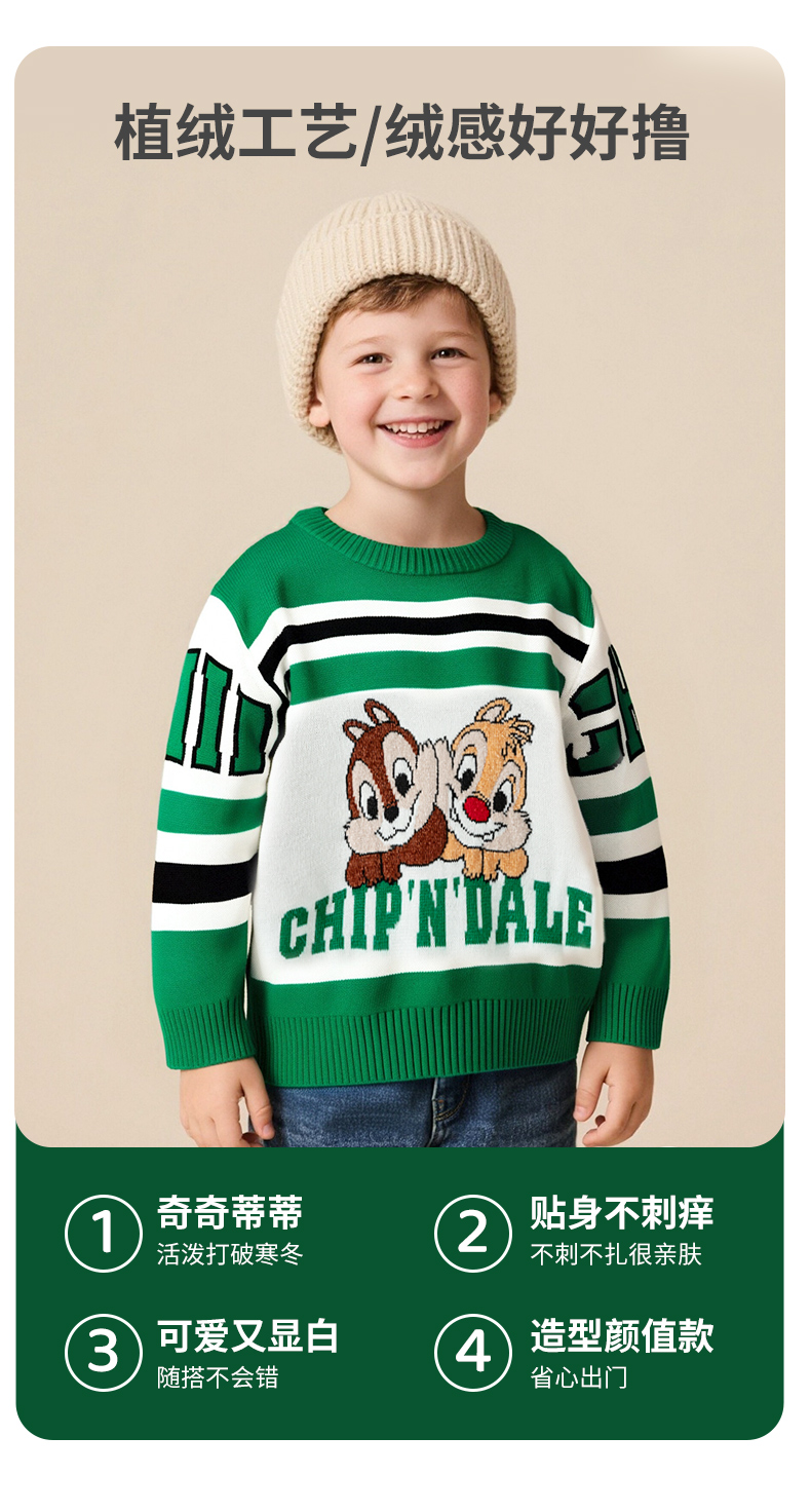 迪士尼可爱针织男童套头上衣毛衣224DS0705