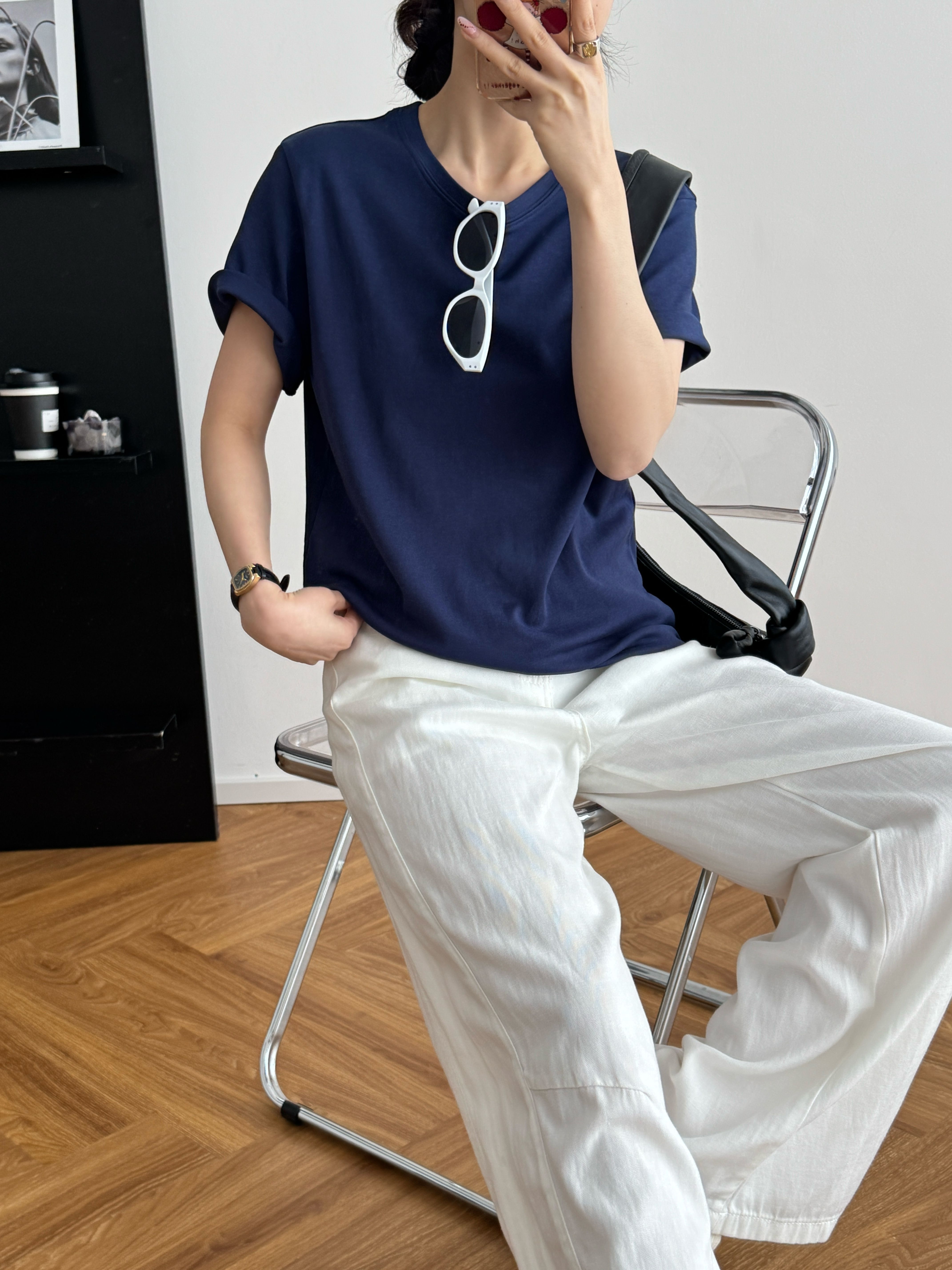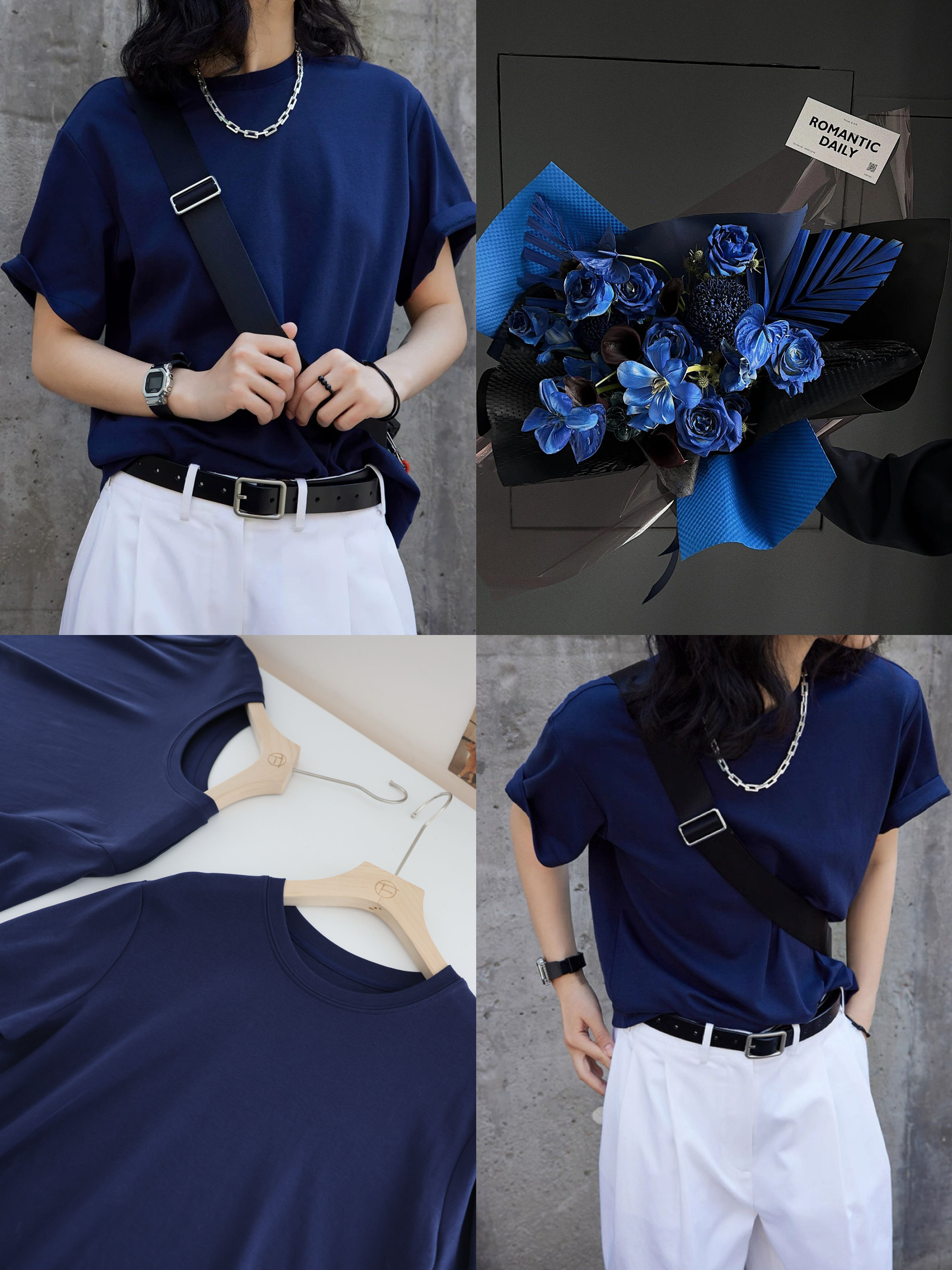 夏天想偷懒又想时髦这件暮夜蓝T恤直接锁死~