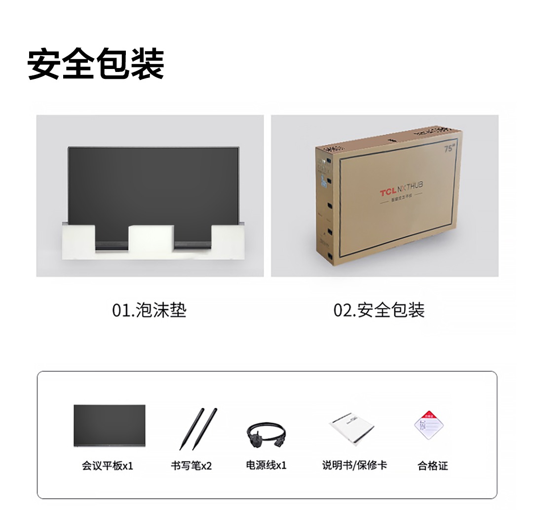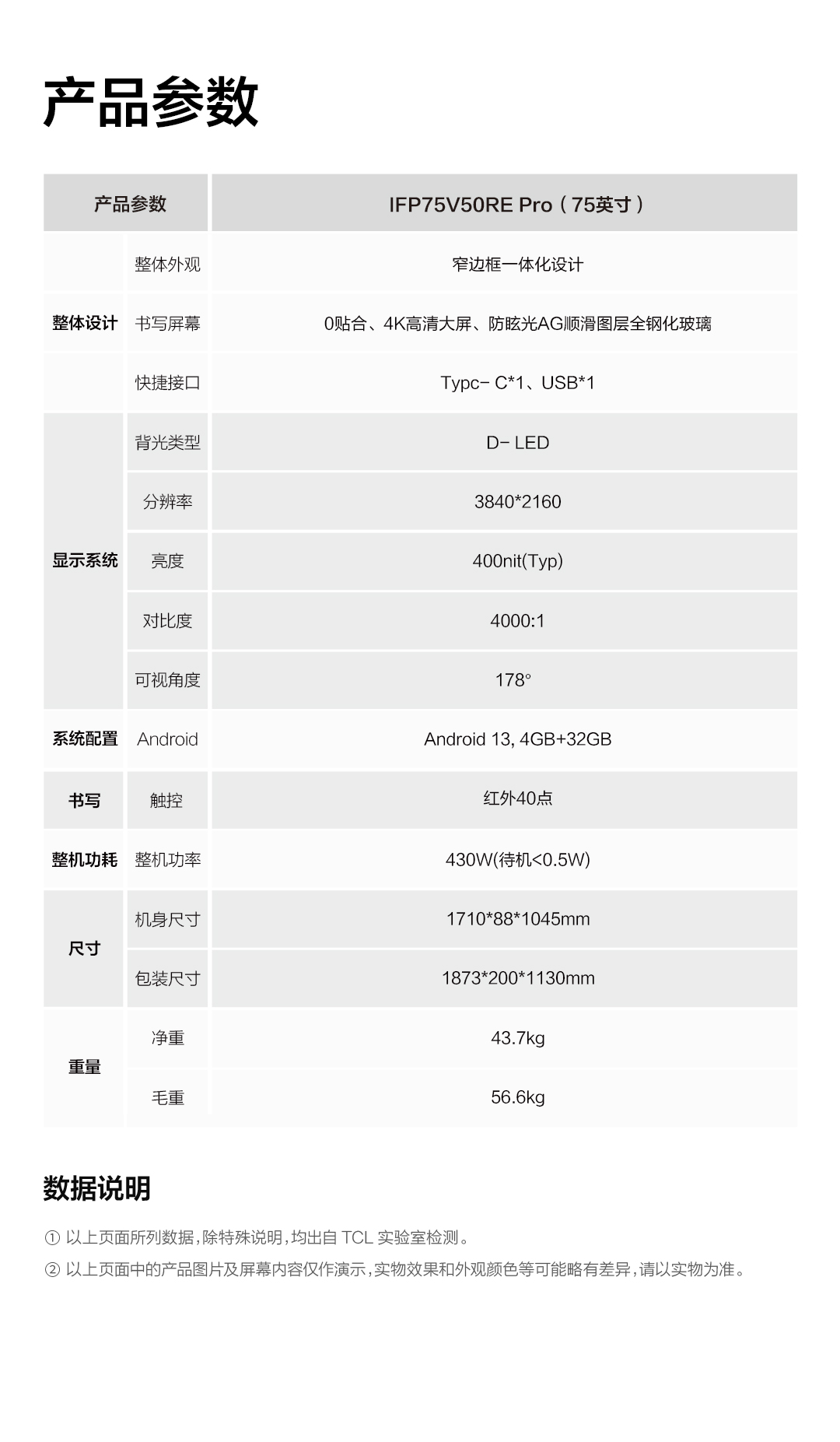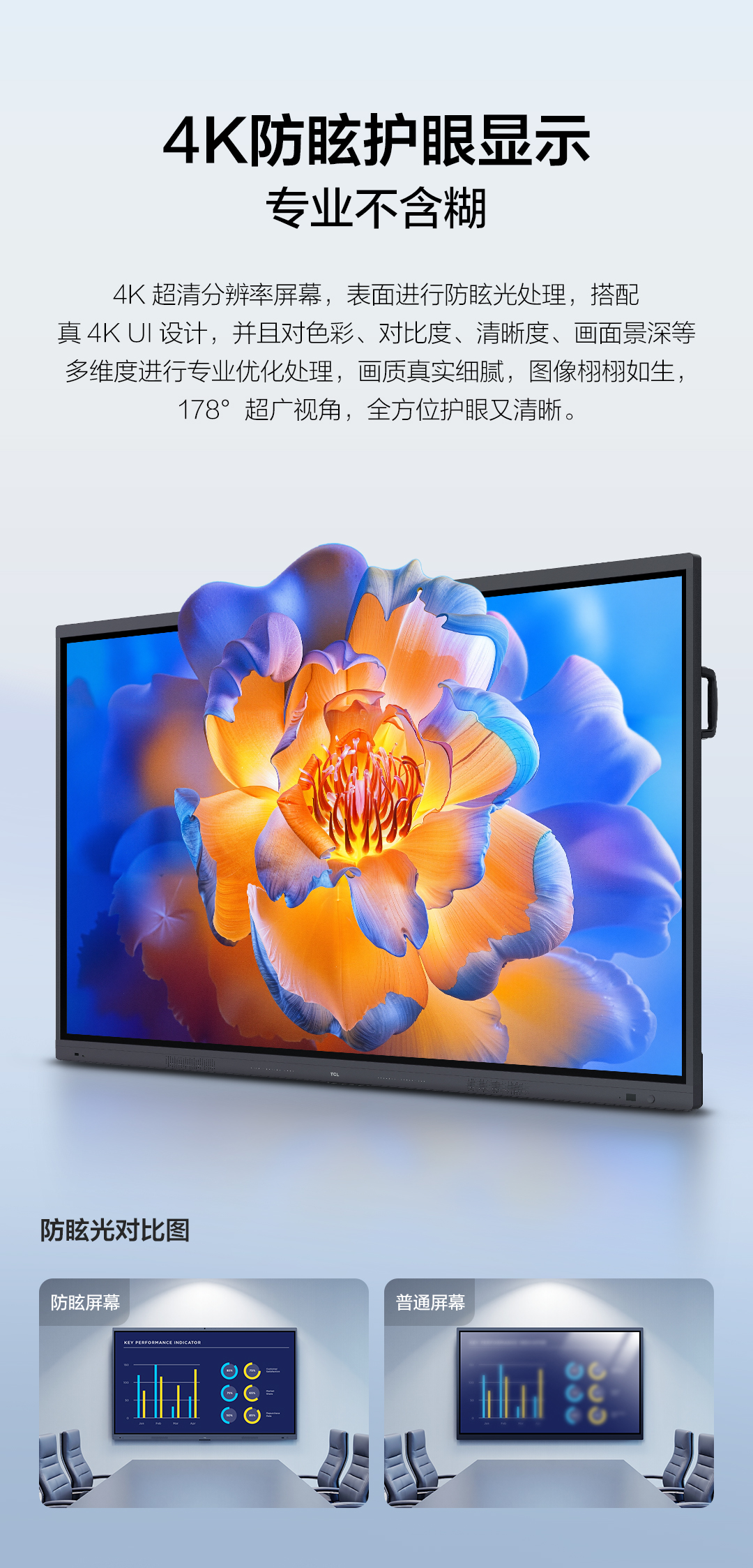 TCL会议平板一体机 75寸触控电视白板无线传屏投影教学培训智能电视商用办公IFP75V50E Pro(含壁挂架)