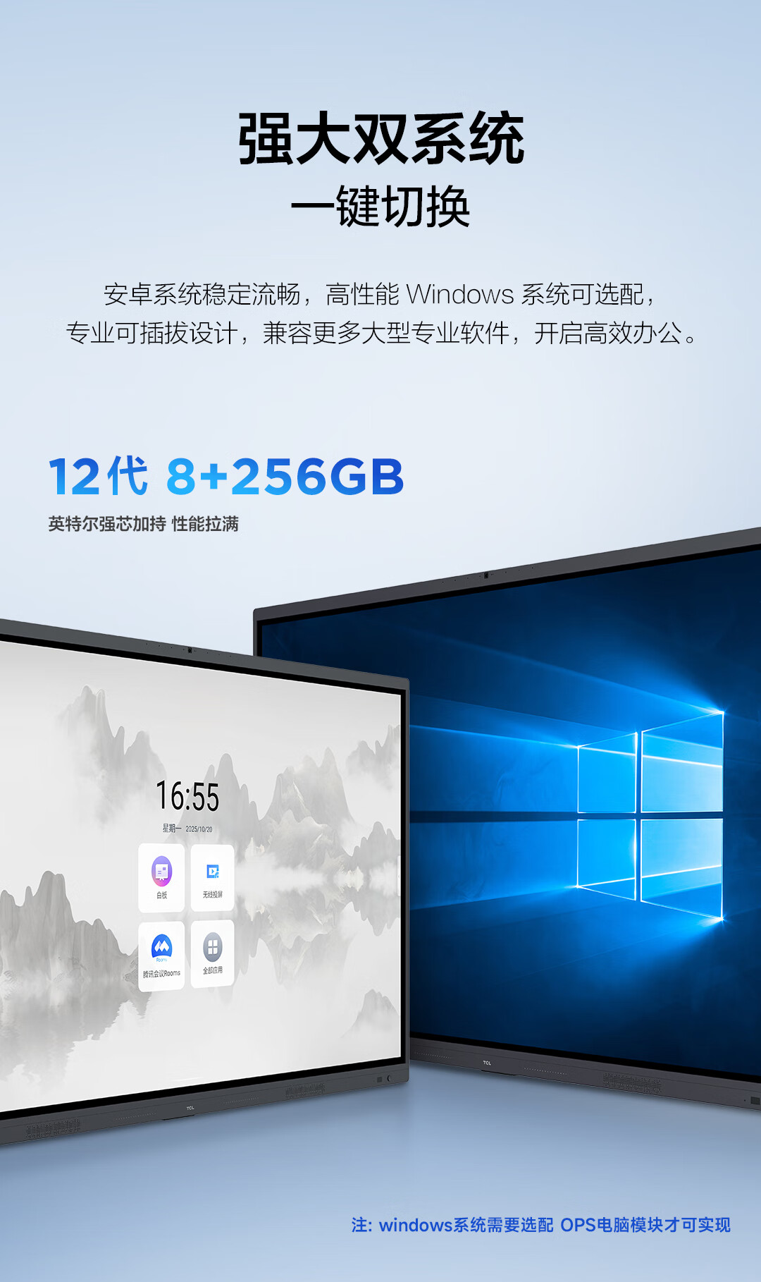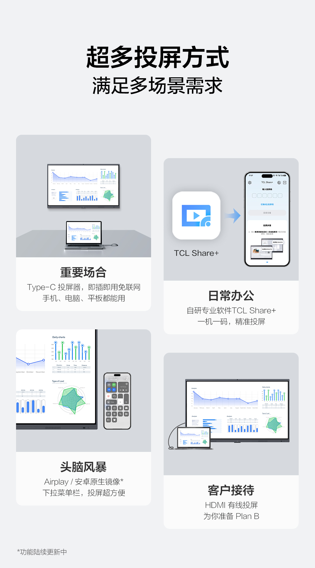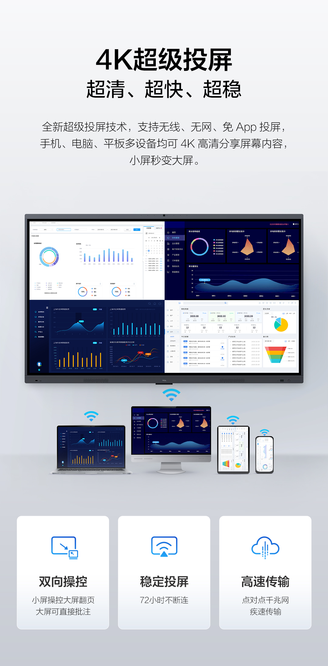 TCL会议平板一体机 75寸触控电视白板无线传屏投影教学培训智能电视商用办公IFP75V50E Pro(含壁挂架)