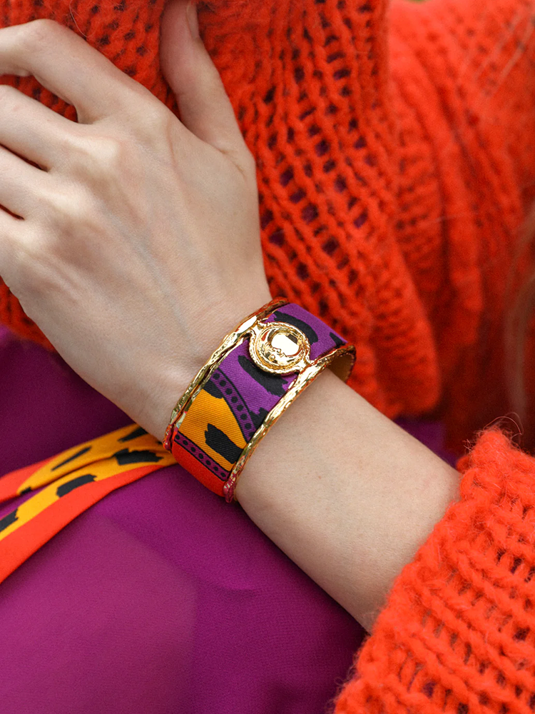 北京仓|AN-NEE-LUNE-橘红色 夏帕诺瓦 2cm 丝巾手镯[法国设计师]